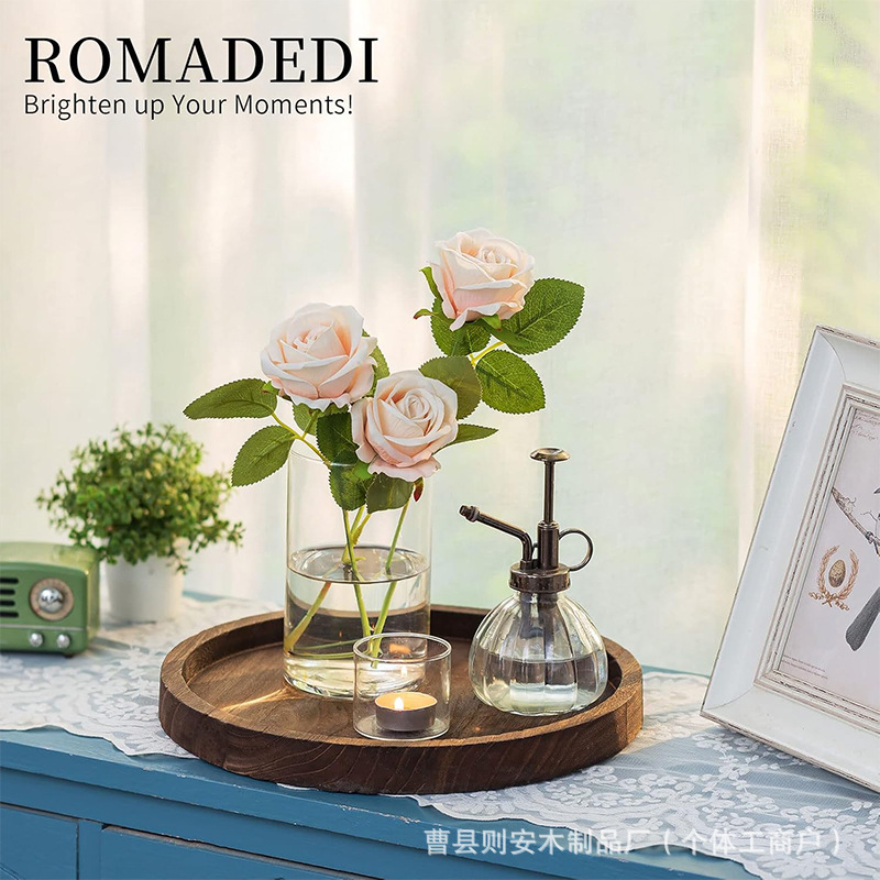现货圆形木质装饰托盘复古烛台托盘农舍托盘厨房台面装饰桌面托盘