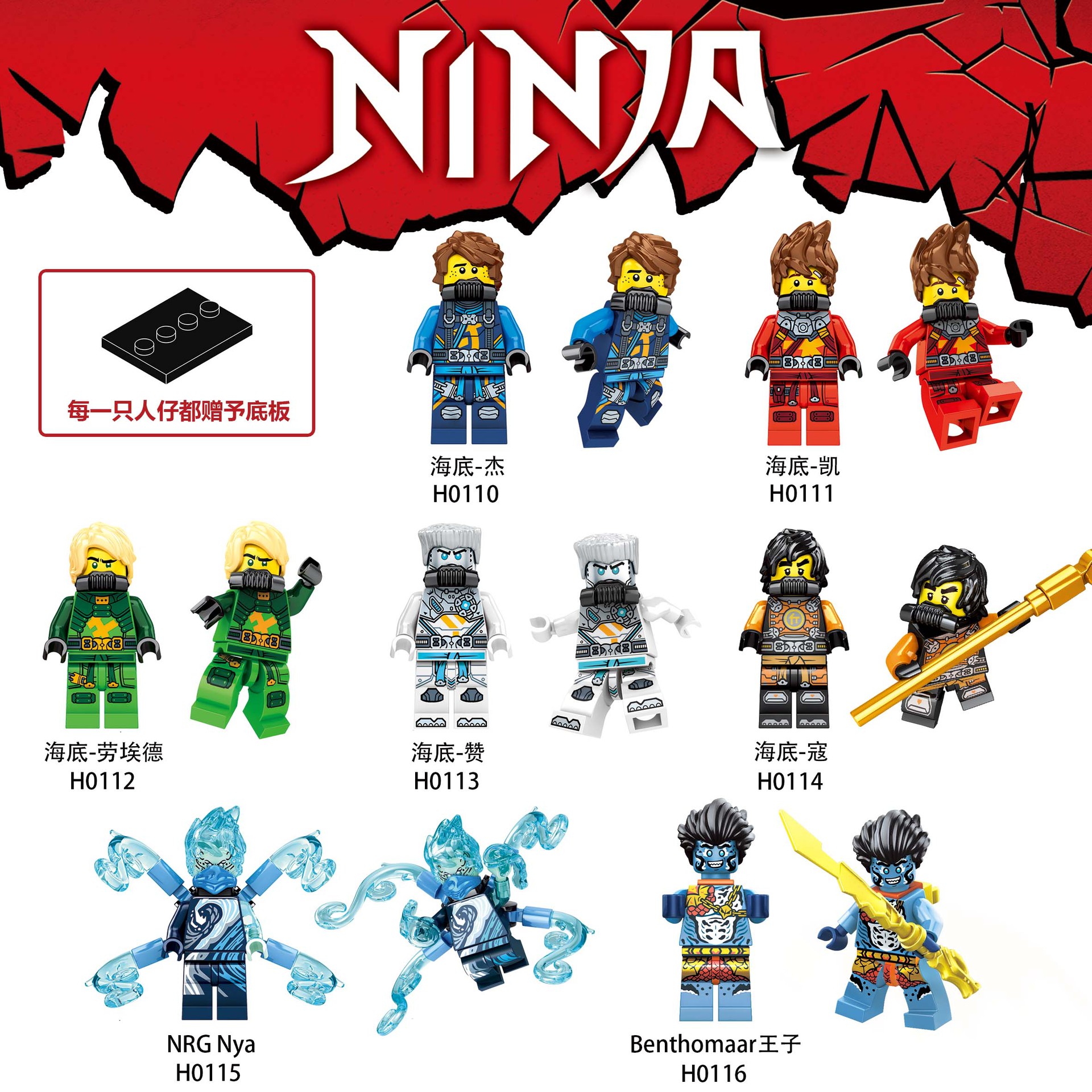 現品の幻影忍者人仔シリーズはレゴの積み木人仔の尼亜凱寇傑益智と互換性があります。