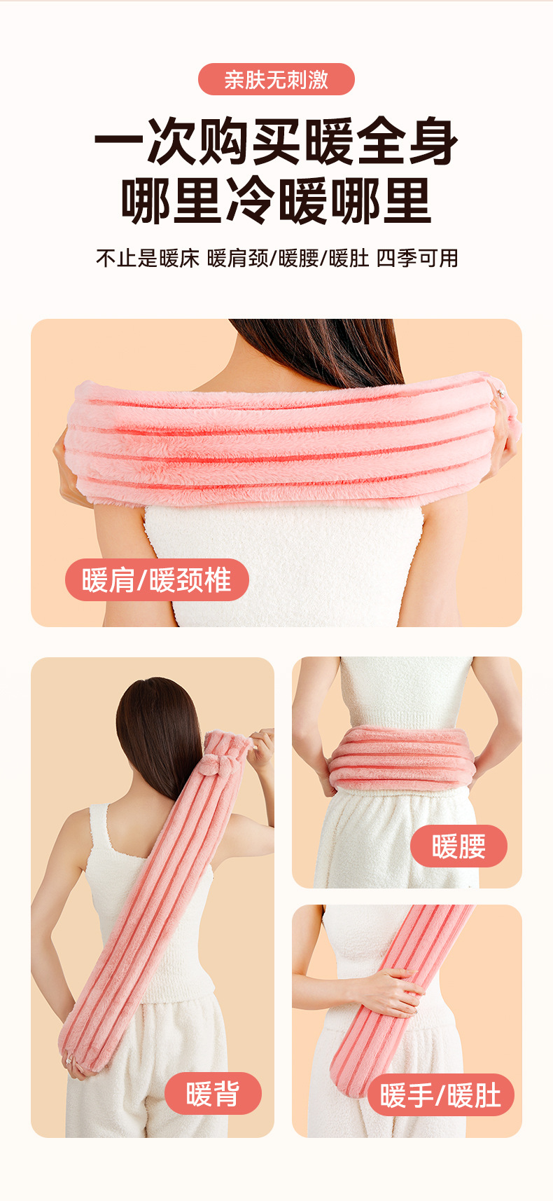 长条护腰带暖水袋注水毛绒套橡胶热水袋灌水大号批发暖手宝暖手袋
