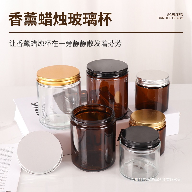 卸売り茶色のキャンドルカップカラーアロマキャンドルグラス蓋付きガラス燭台アロマキャンドル缶