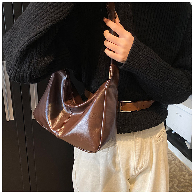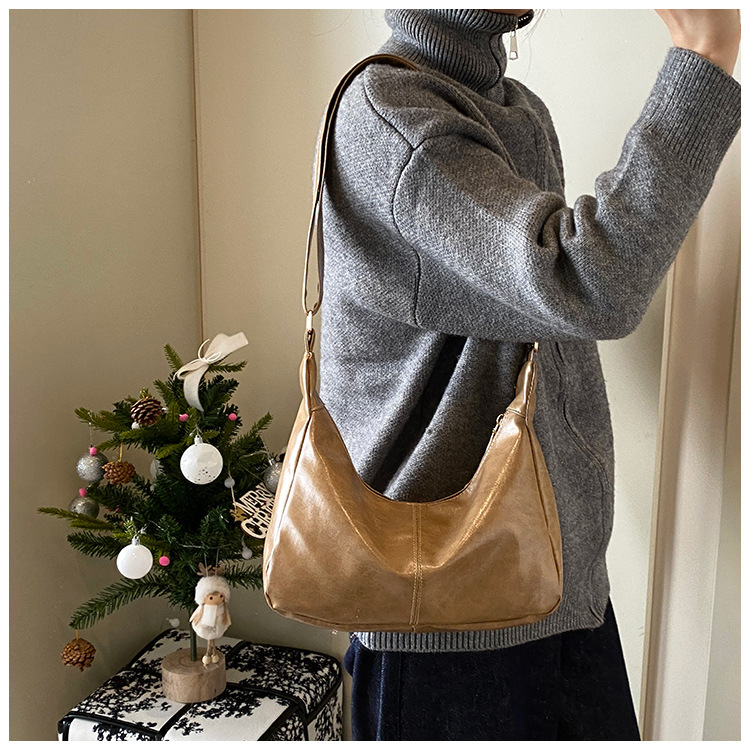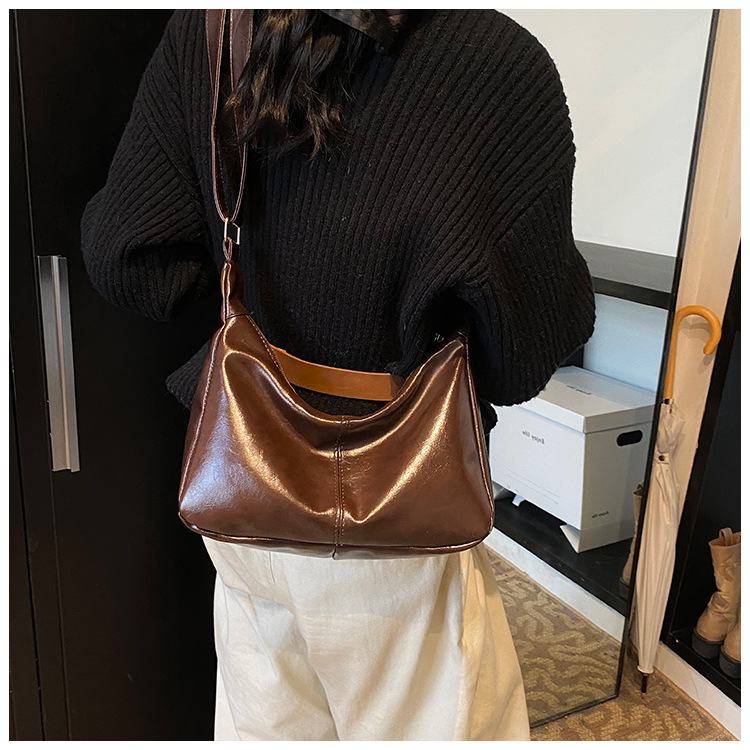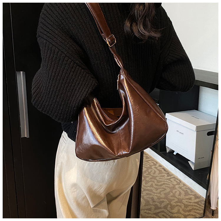 外単高級質感バッグ女性大容量2024新型秋冬レトロ小衆斜めショルダーバッグ通勤餃子バッグ