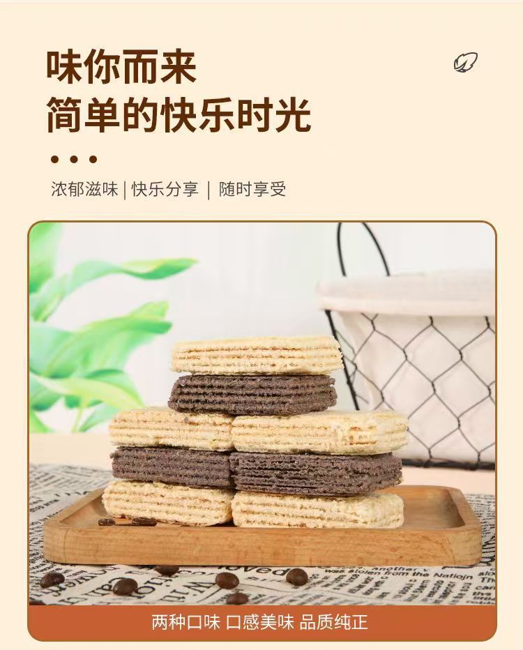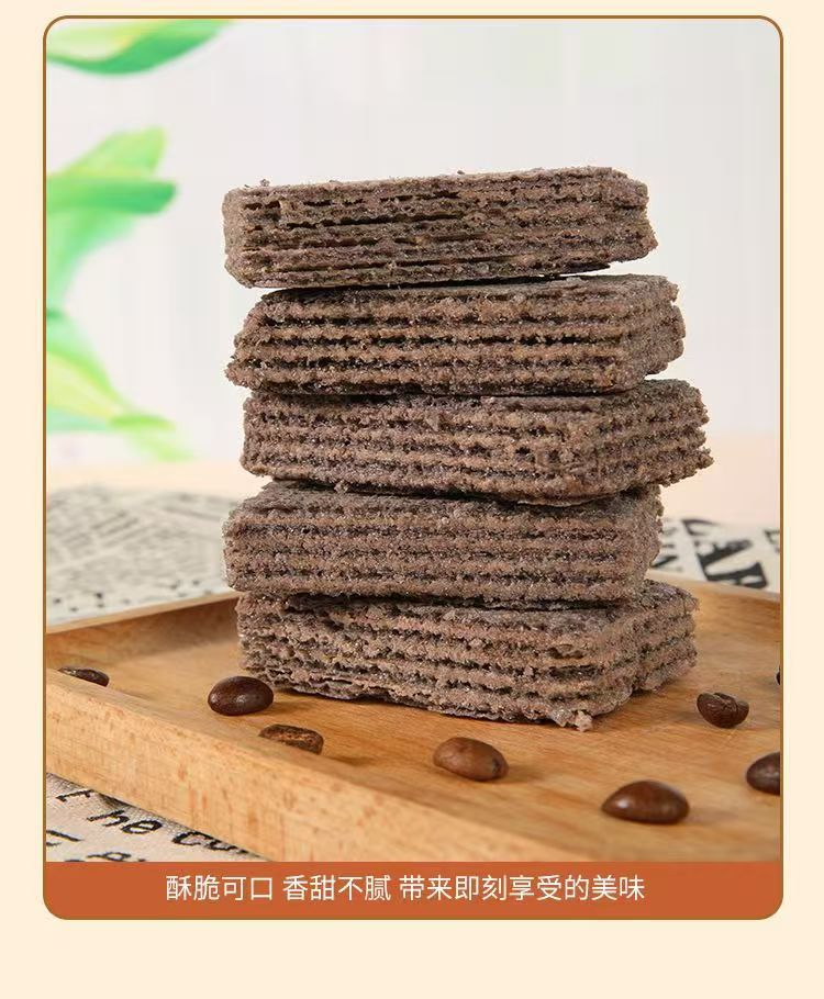 ヘーゼルナッツ風味の層状でサクサクとしたカジュアルスナック、ウエハースビスケット、仕事中の空腹を満たす夜の必需品