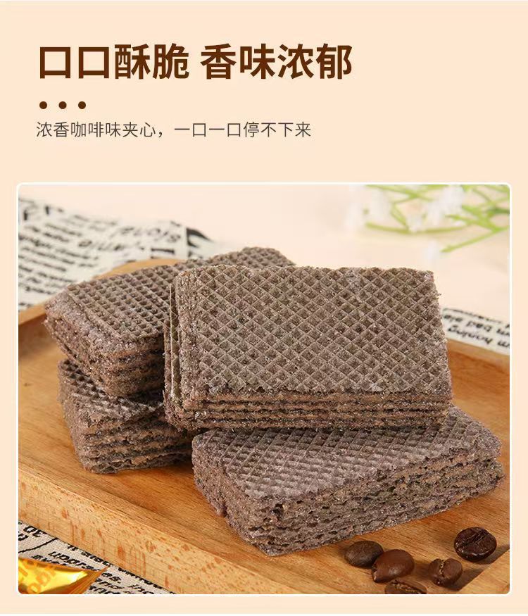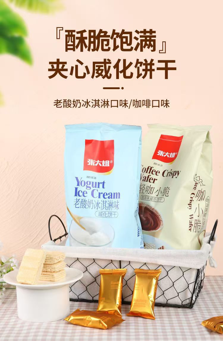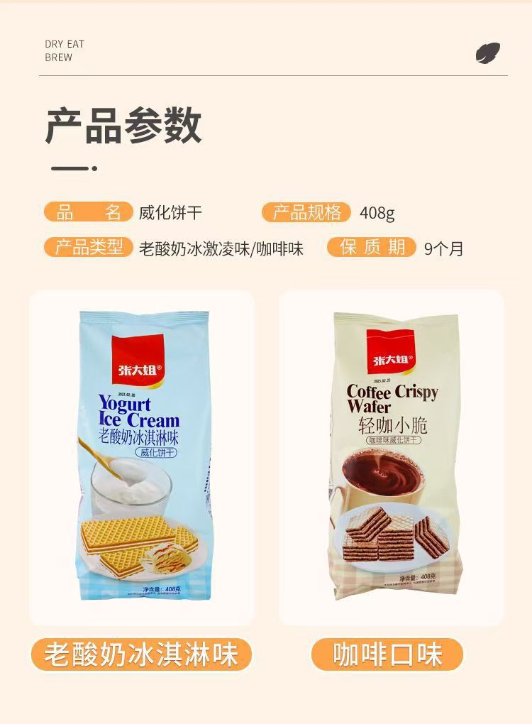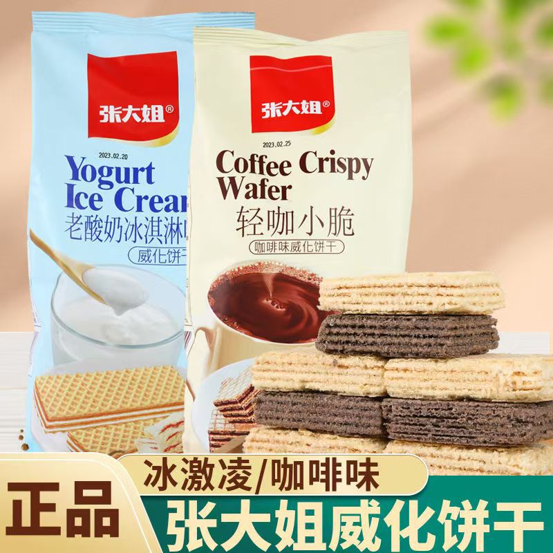 張姉妹のウエハースビスケット、ヨーグルトアイスクリーム味、クリスピーなコーヒー味、408g袋入り、軽食、まろやかな香り