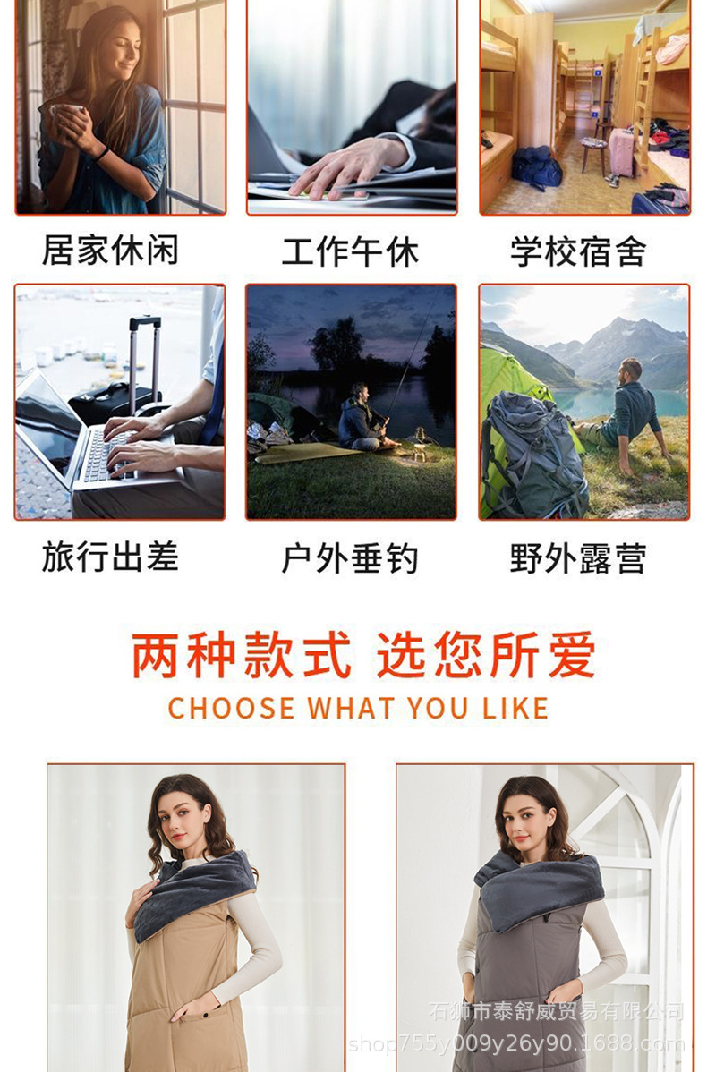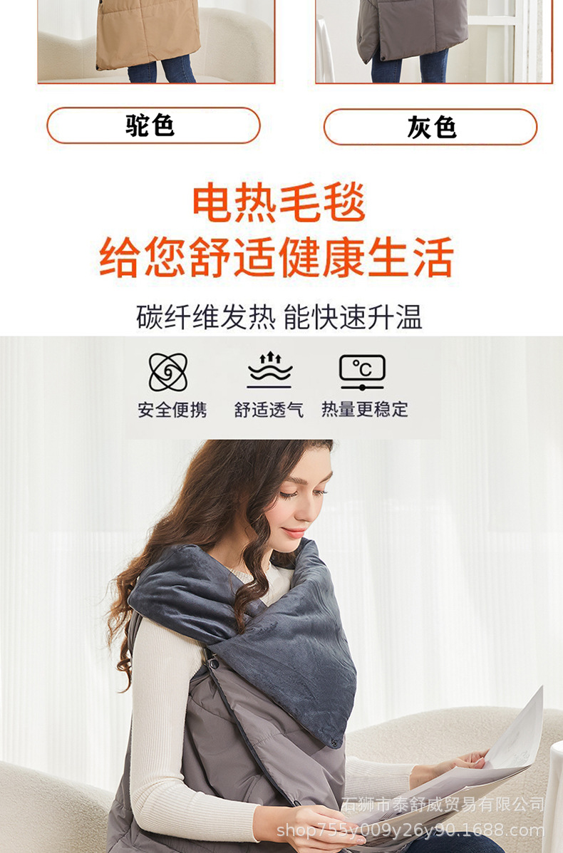 跨境新款斗篷暖身盖毯USB加热可水洗发热披肩保暖毛毯电热毯披肩