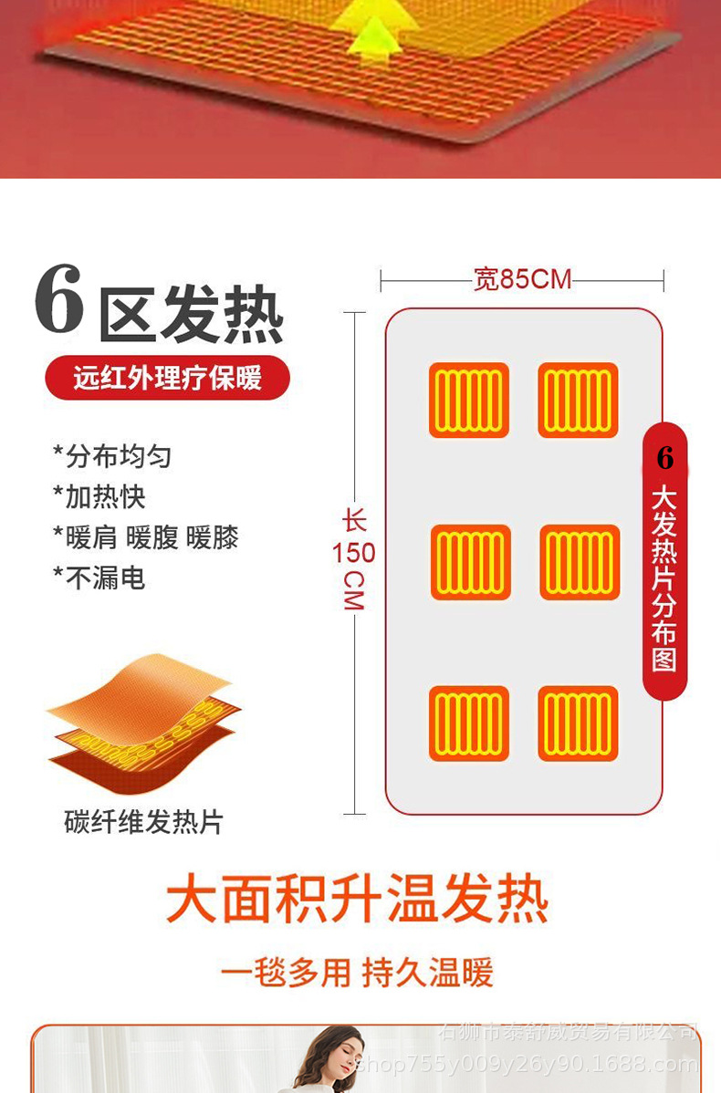 冬季爆款发热披肩居家办公电热暖身毯石墨烯电热加热披肩可水洗