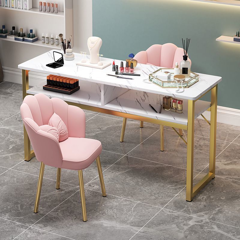 ネイルアート店化粧テーブル金色ネイルアート半円テーブルと椅子ネット赤鉄芸岩板シングル二人軽贅沢美容ネイルアート台