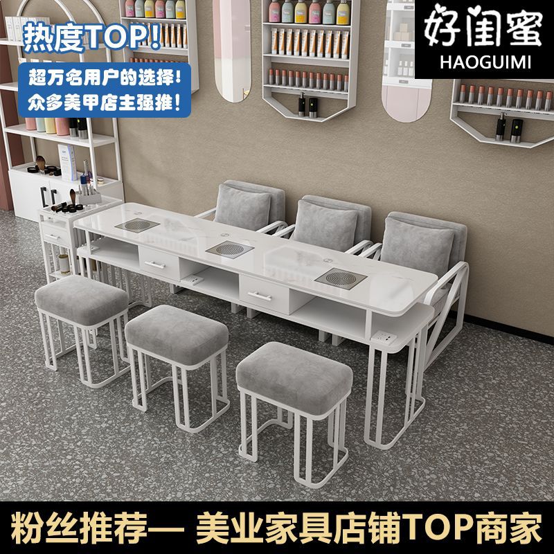 現代美甲卓単三人美甲台経済型美甲店ネット赤溝収納ケースに掃除機が埋め込まれている