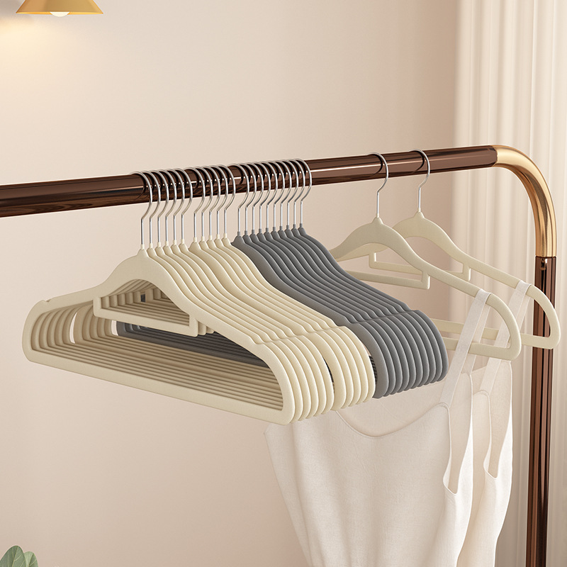 首の短い植毛ハンガー家庭用タンスに服を掛けて滑り止めをします。