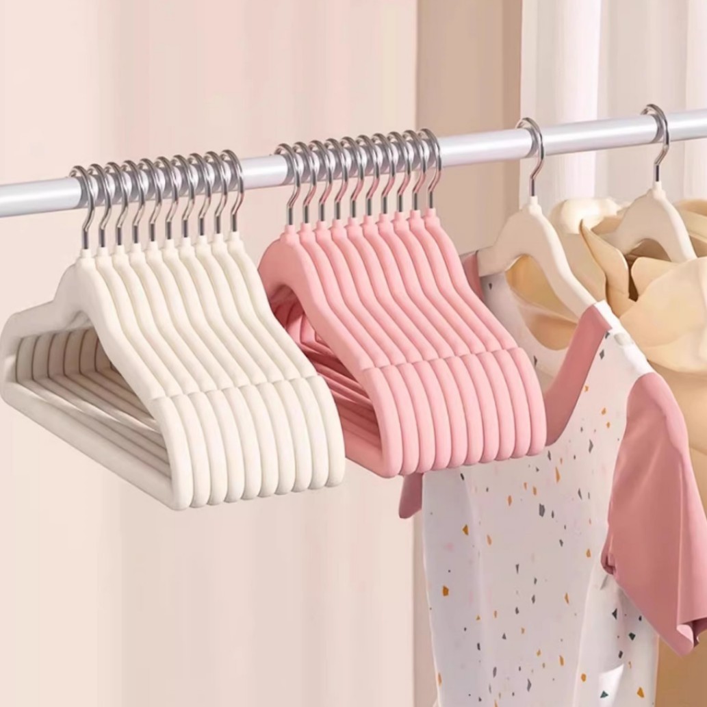 子供用植毛ハンガー整理師は、滑り止めの肩に跡のないハンガーを使用しています。