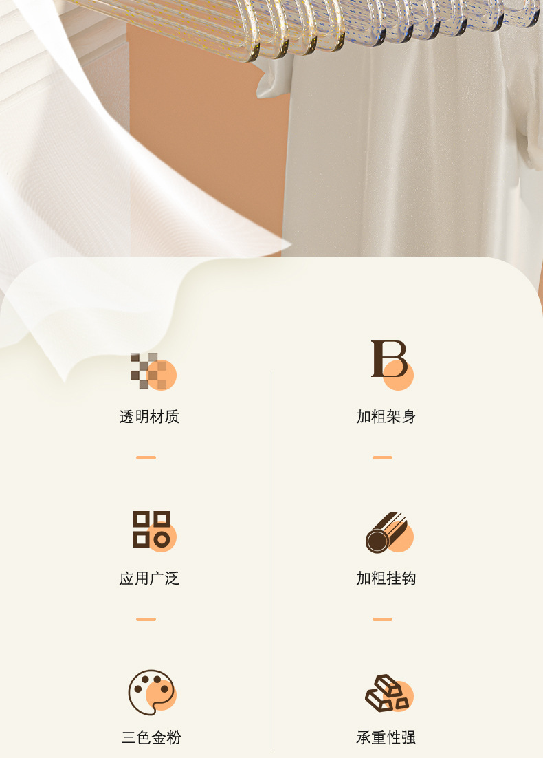 金粉ハンガー水晶ins風少女心透明PETフラッシュハンガー服掛け洋服店用模造アク