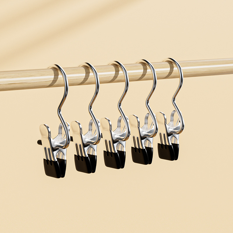 3字クリップ多機能フッククリップ付きシングルフックズボンクリップ干しクリップ靴下クリップステンレス家庭用無痕クリップハンガー