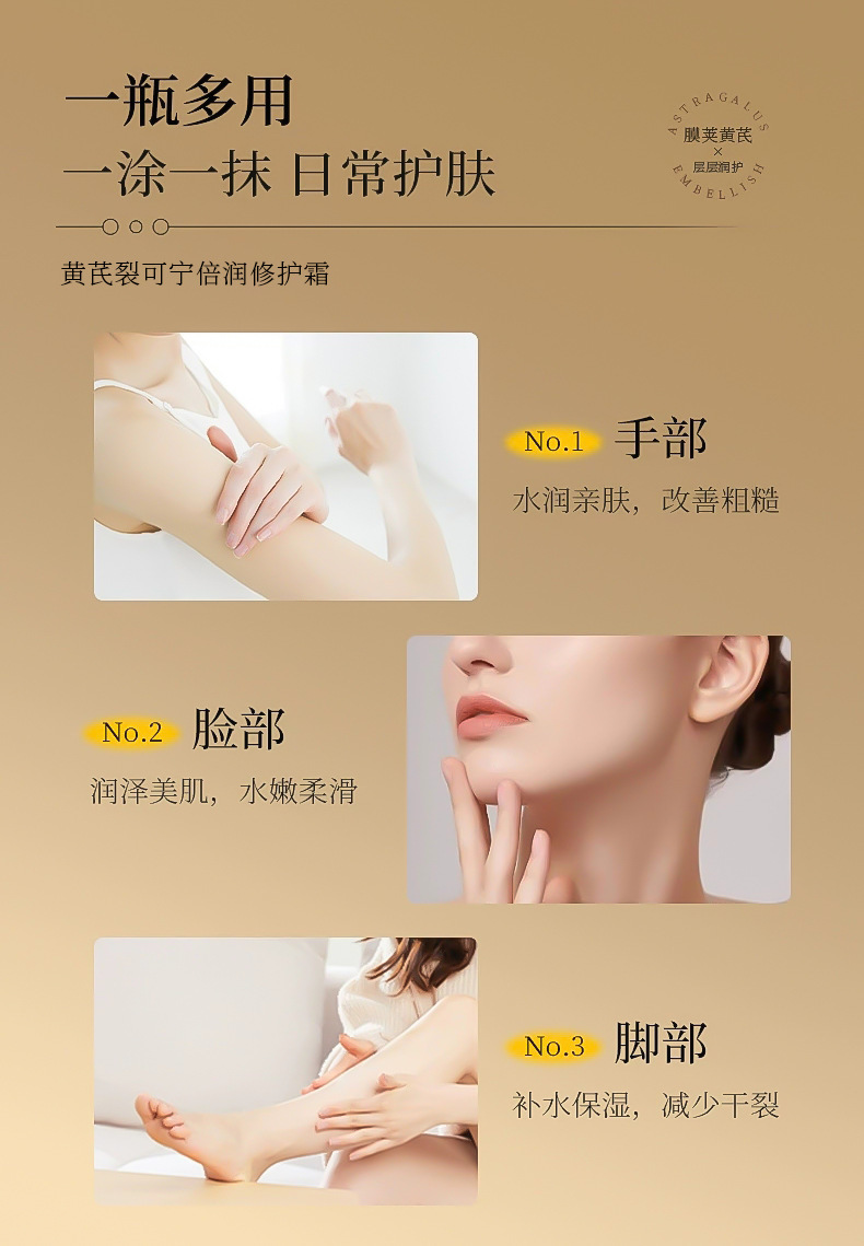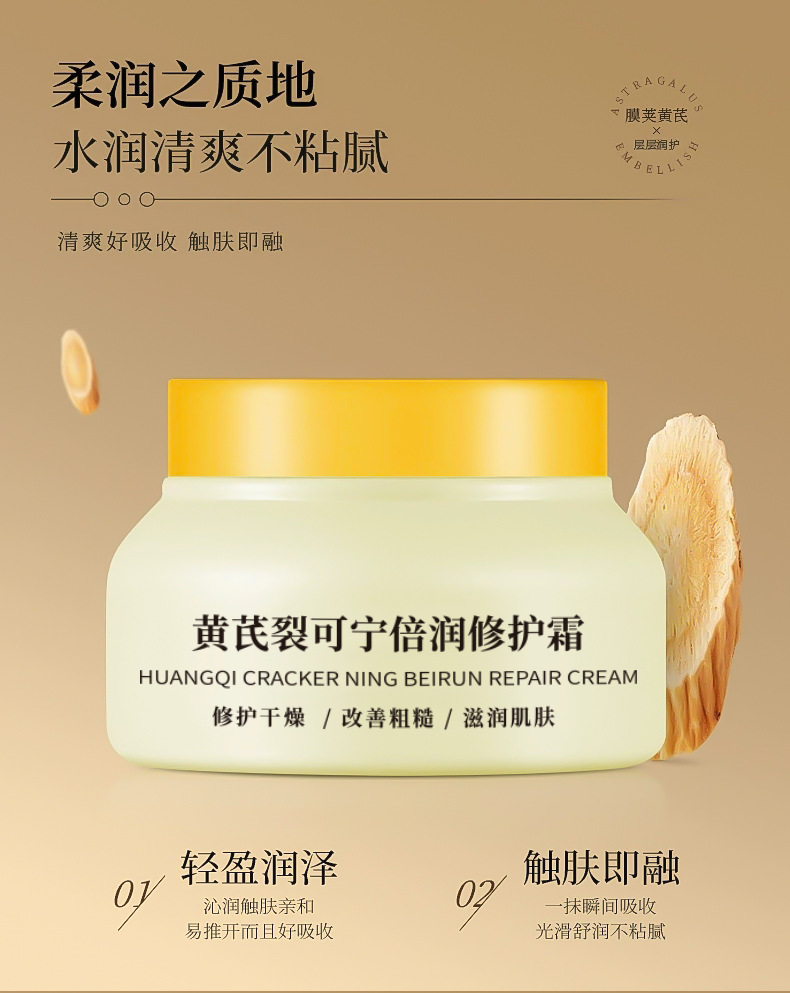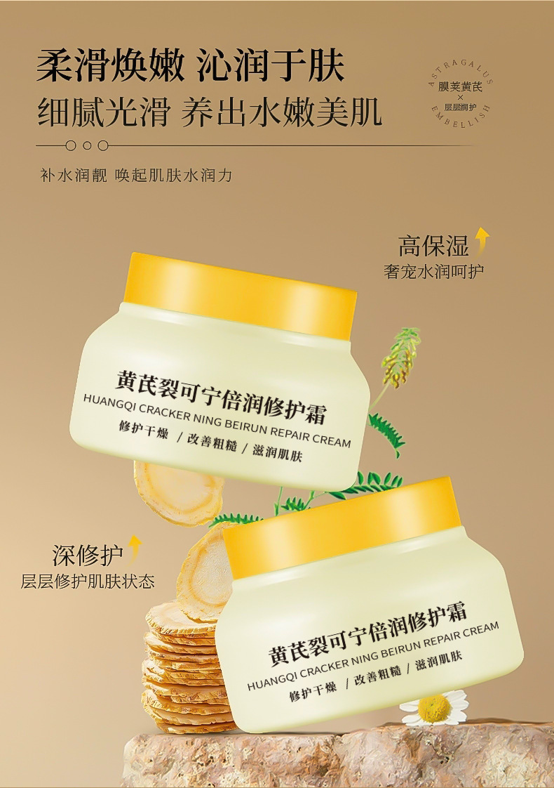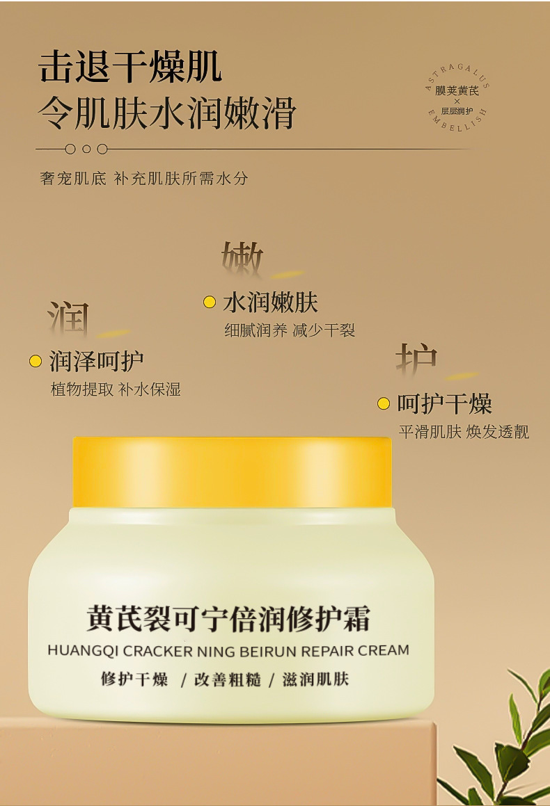 傾斜年齢のオウギ裂可寧はクリームを修理して水を補給して保湿します。