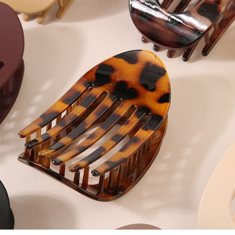 アワビ型ヘアクリップ 女性用 後頭部ヘアアレンジツール 曲線型ポニーテールクリップ 滑り止めヘアピン ヘッドアクセサリー レオパード柄 おしゃれ 通勤用