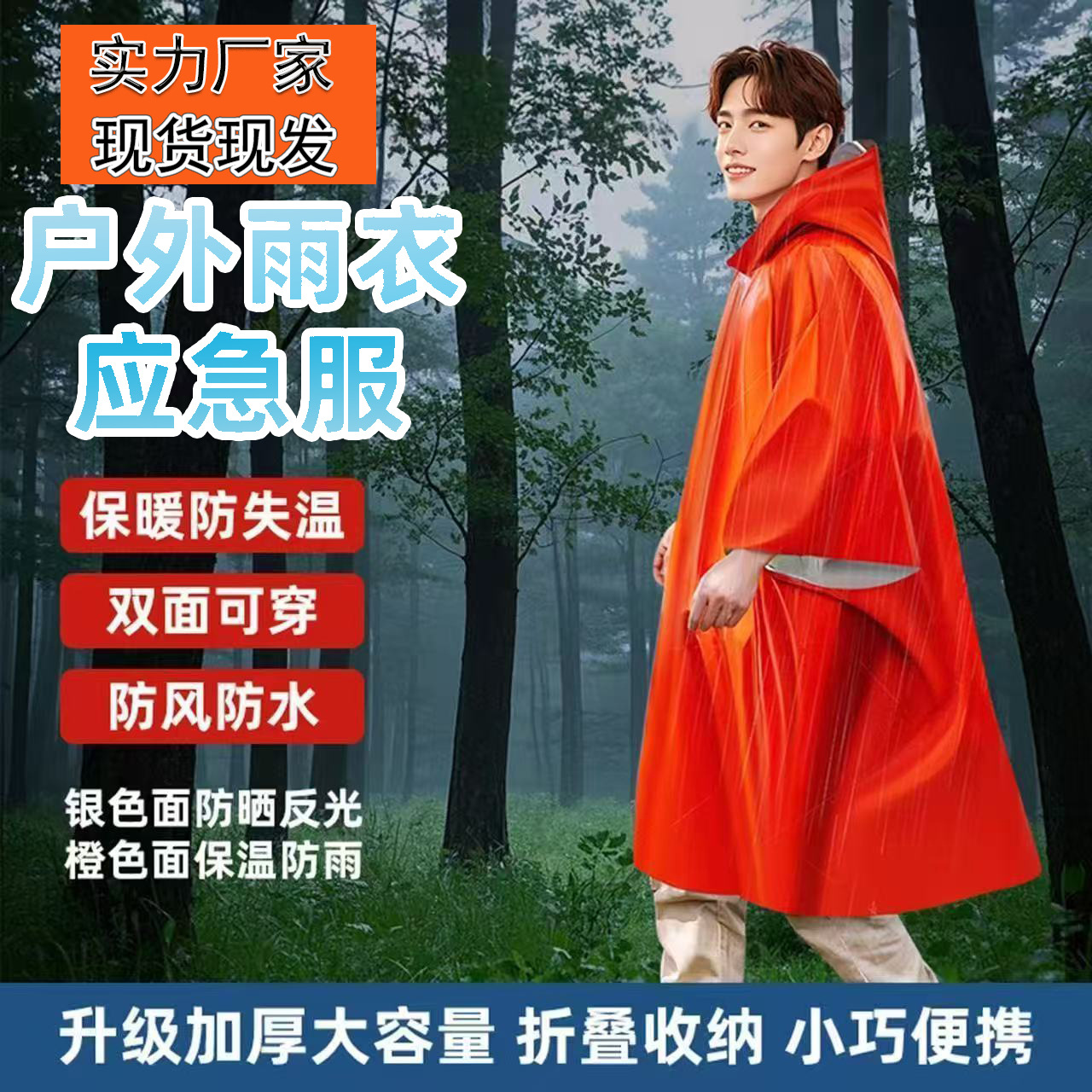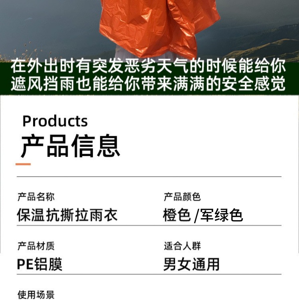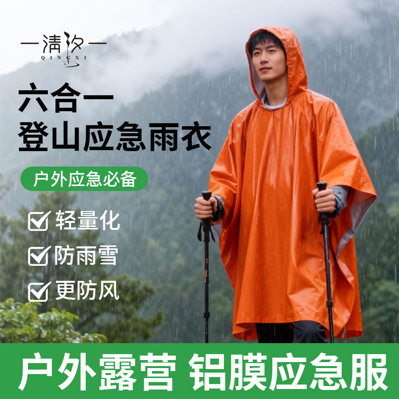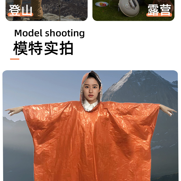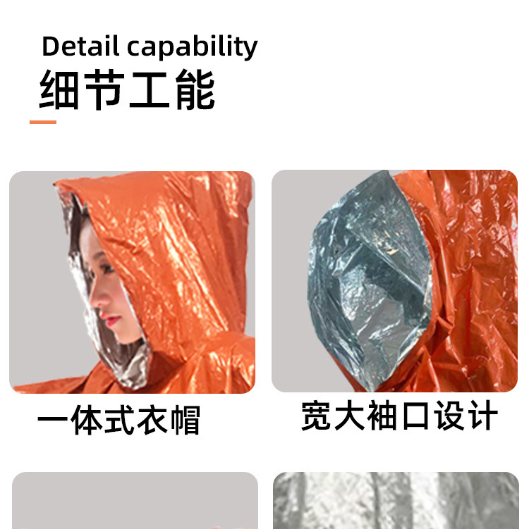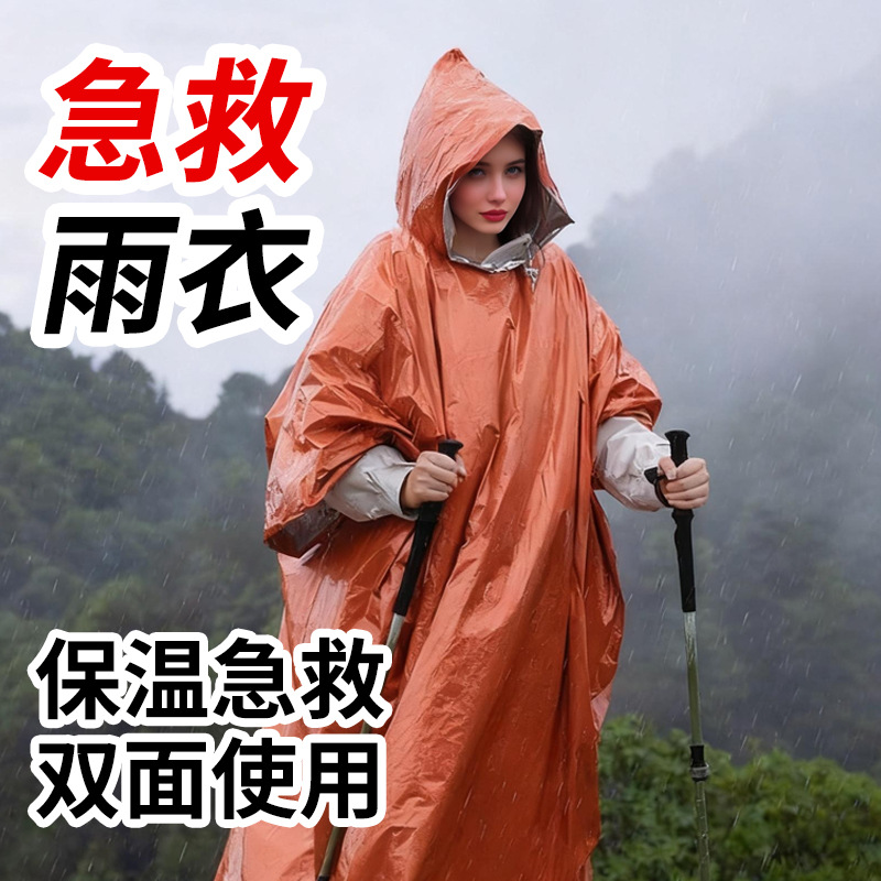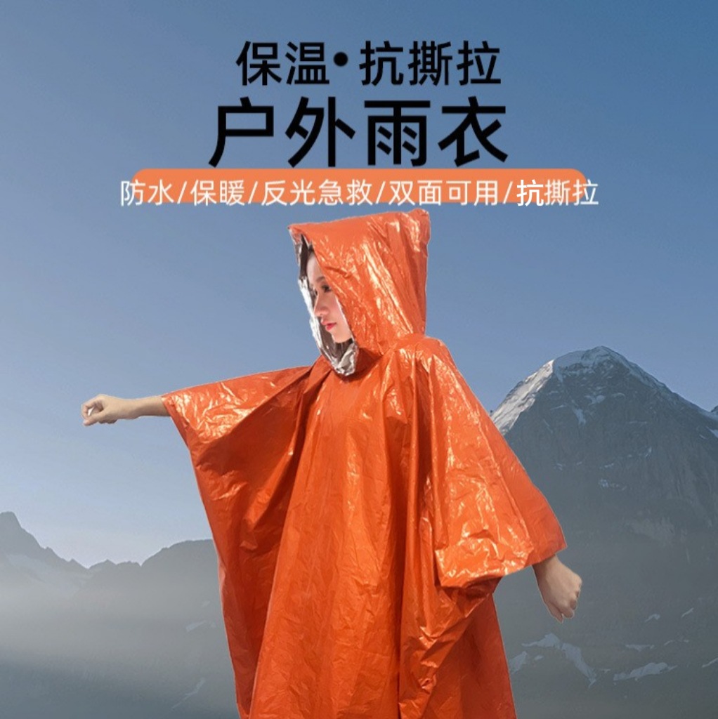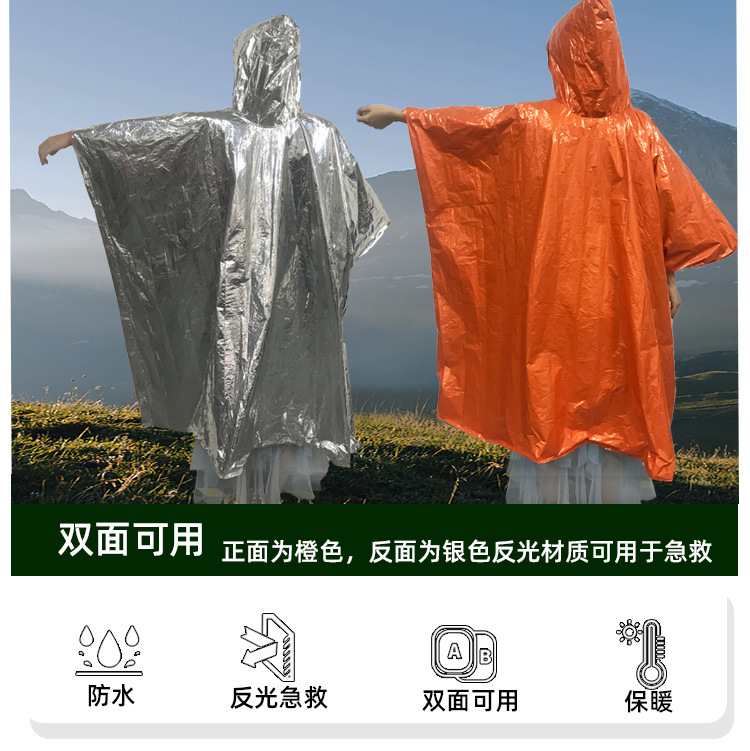 户外应急雨衣便携式铝箔保温急救衣露营登山应急防失温多功能雨披