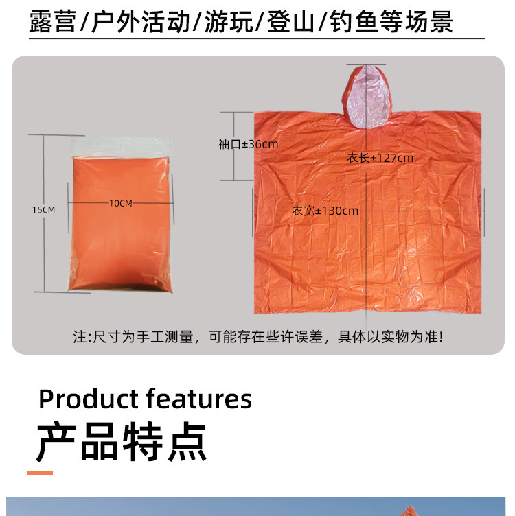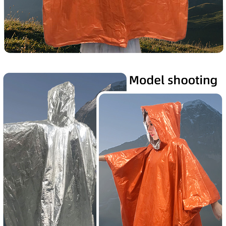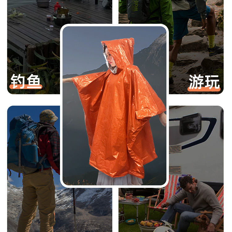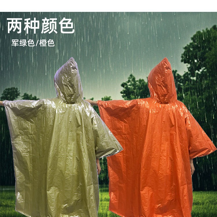 キャンプ用緊急防寒防水帽子付きマント型救命携帯レインコート卸売アウトドアレインコート