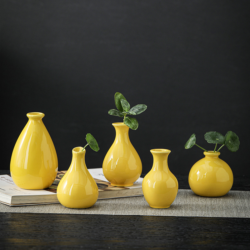 黄色の陶磁器の小さい花瓶はお祝いして新年のデスクトップの小さい花瓶の茶卓の茶道の水培の小さい花を飾って飾ります。