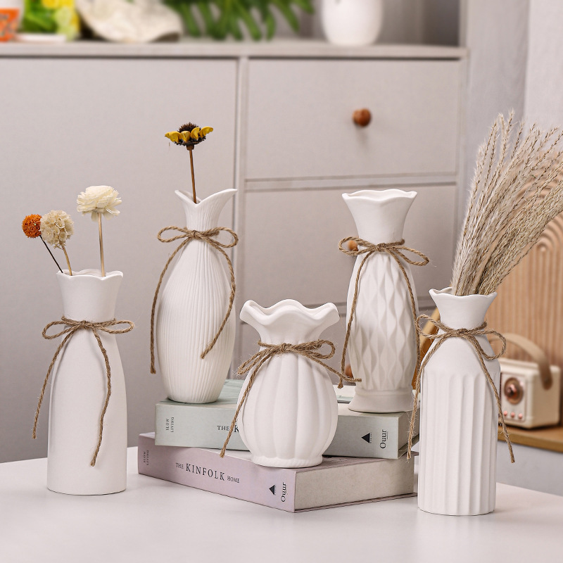 素焼きホワイトセラミック花瓶モダンシンプルなドライフラワー生け花器卸売クリエイティブホーム装飾工芸品置物