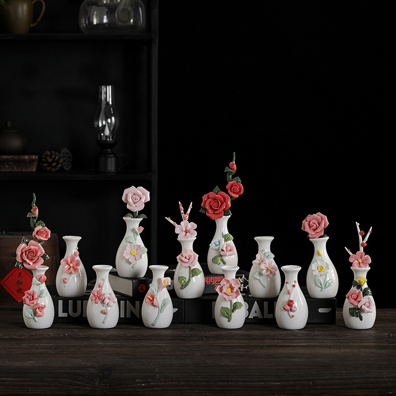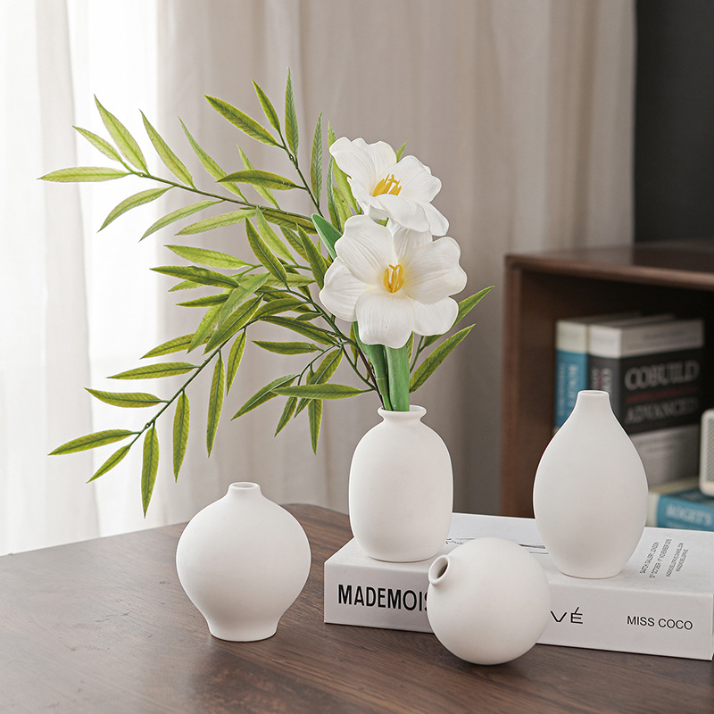 インズフラワーアレンジメント、セラミック製小花瓶、白い工芸品、フラワーアレンジメント、アロマボトル、リビングルーム卸売、ホームハンドメイド