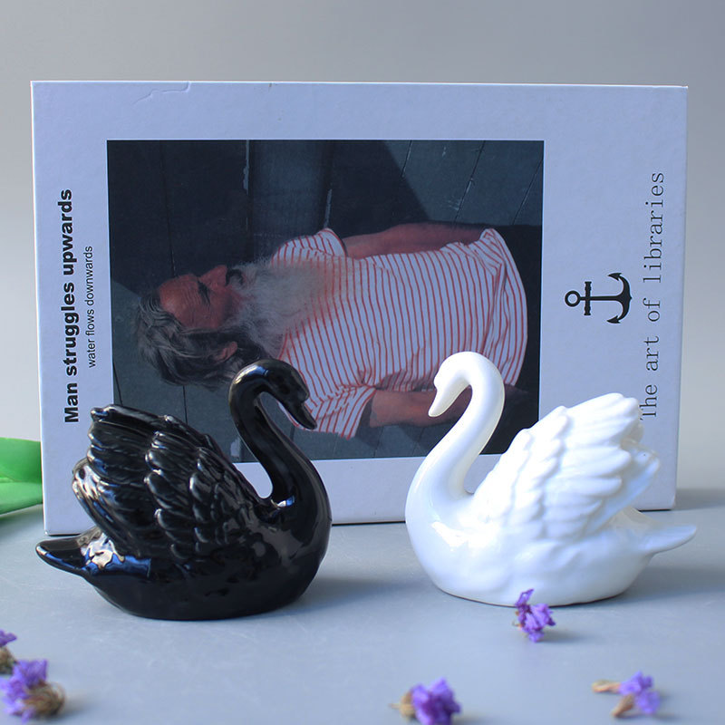 現代のシンプルな白黒カップルの白鳥陶磁器の小さい置物の結婚の贈り物の家の結婚の部屋の装飾品の陶磁器