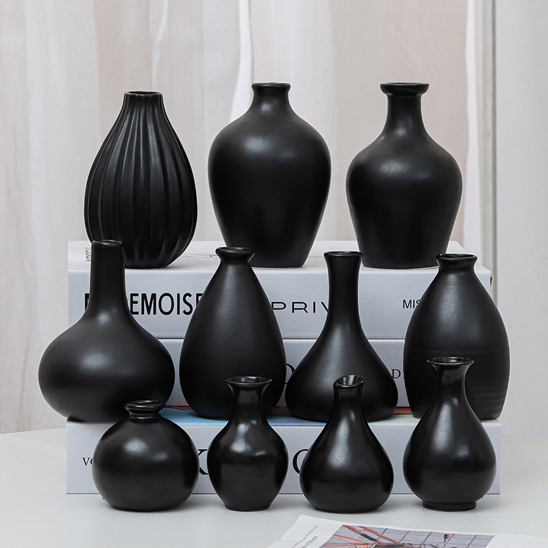 北欧ins陶磁器花瓶亜光黒色陶磁器小花瓶置物ドライフラワー水培花器家庭装飾品