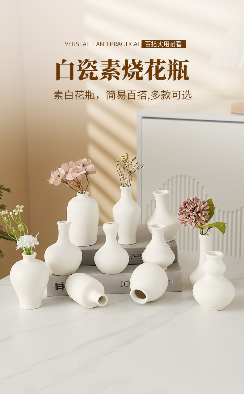 白色素焼陶磁器花瓶diy落書き小花瓶家庭玄関民宿花挿し陶磁器装飾小置物