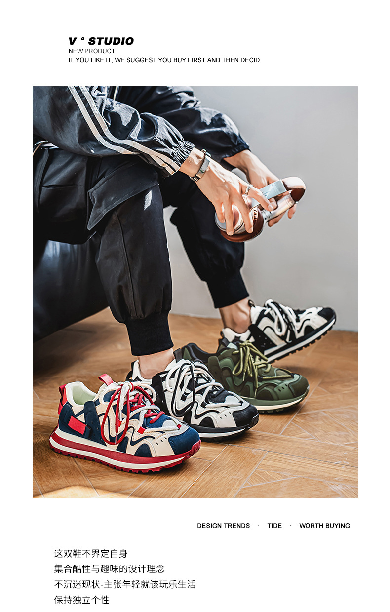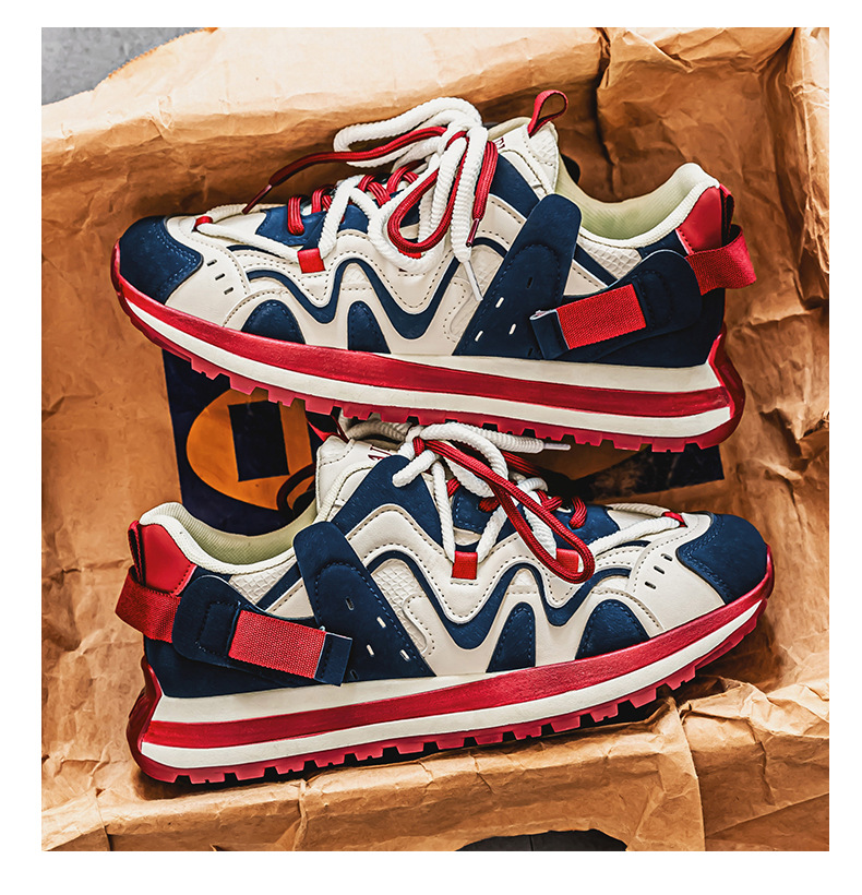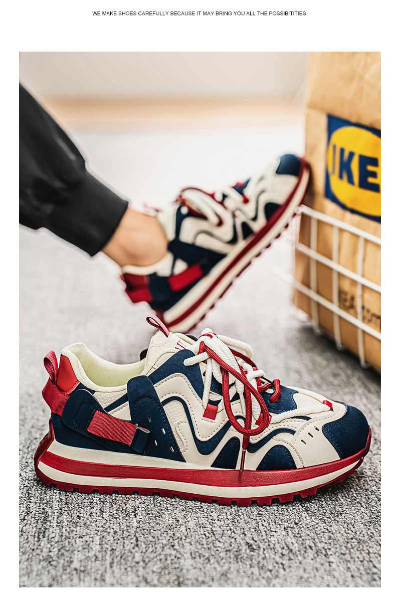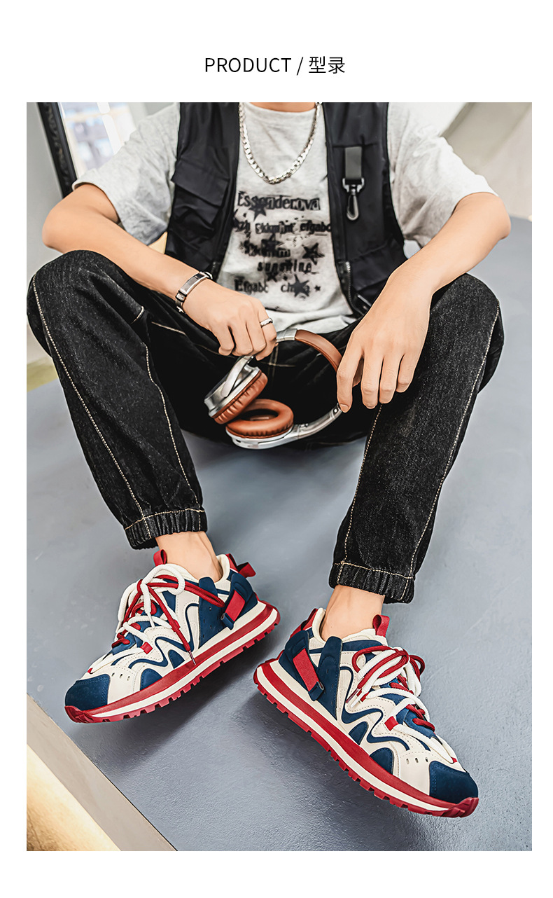 ヨーロッパステーションカラーブロックダッドシューズ2024秋スプライシング厚底滑り止めスポーツカジュアル紳士靴カジュアルで多用途