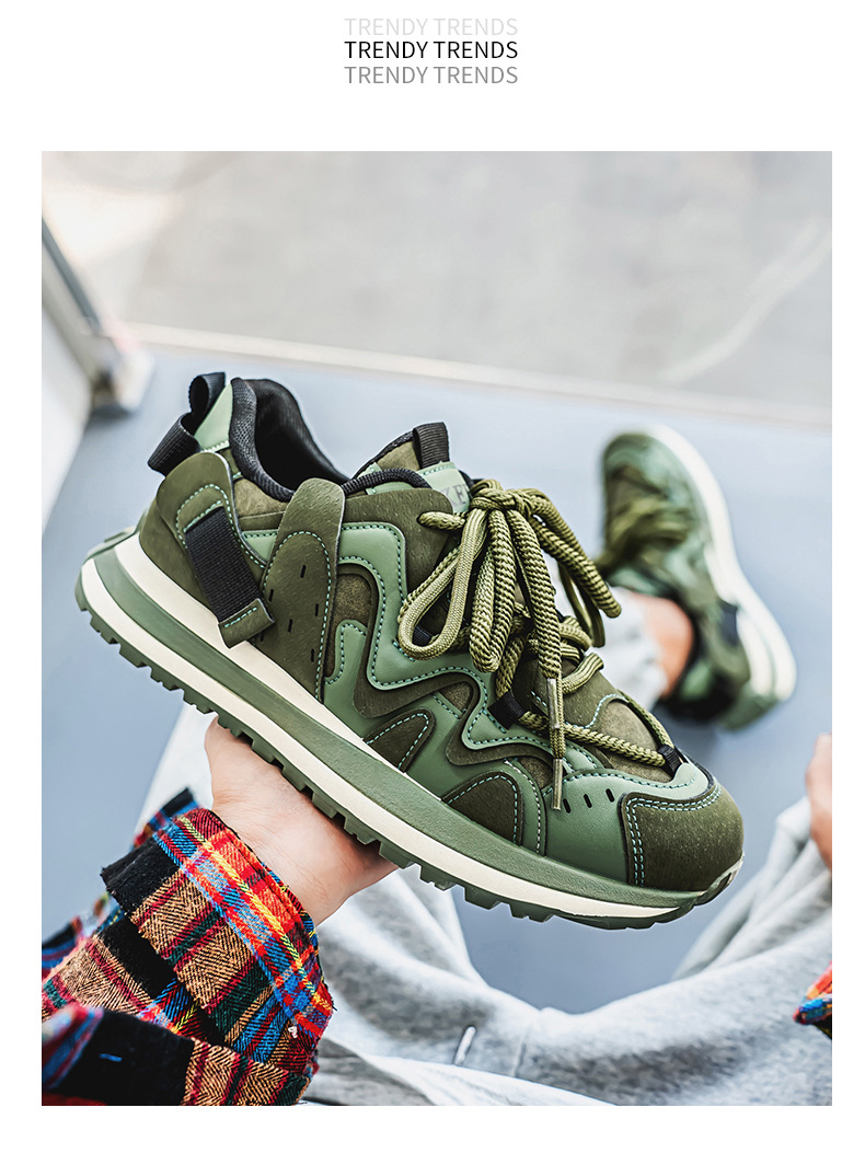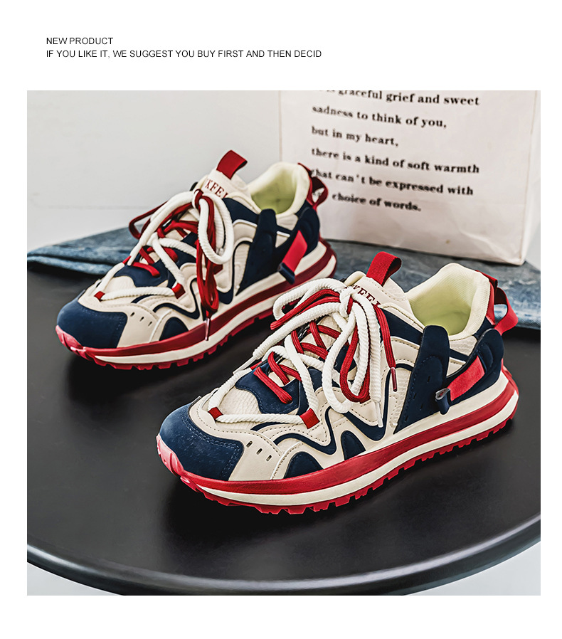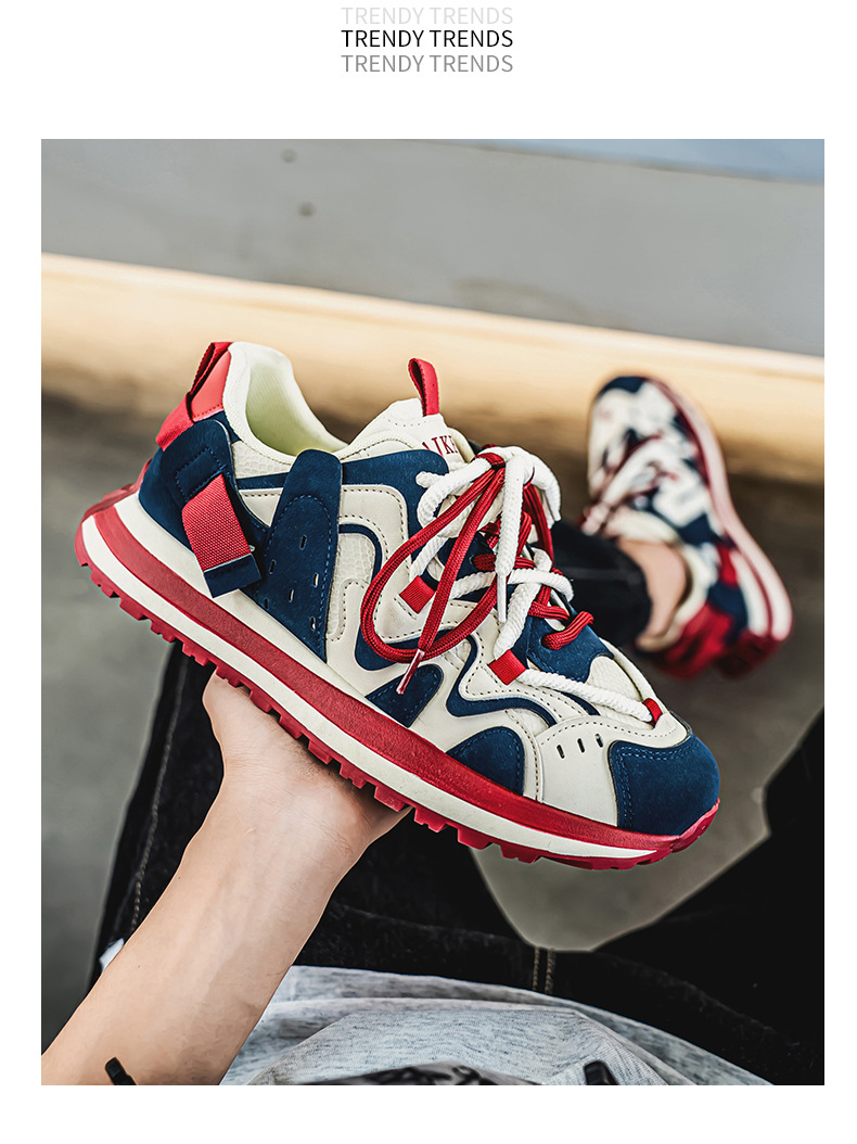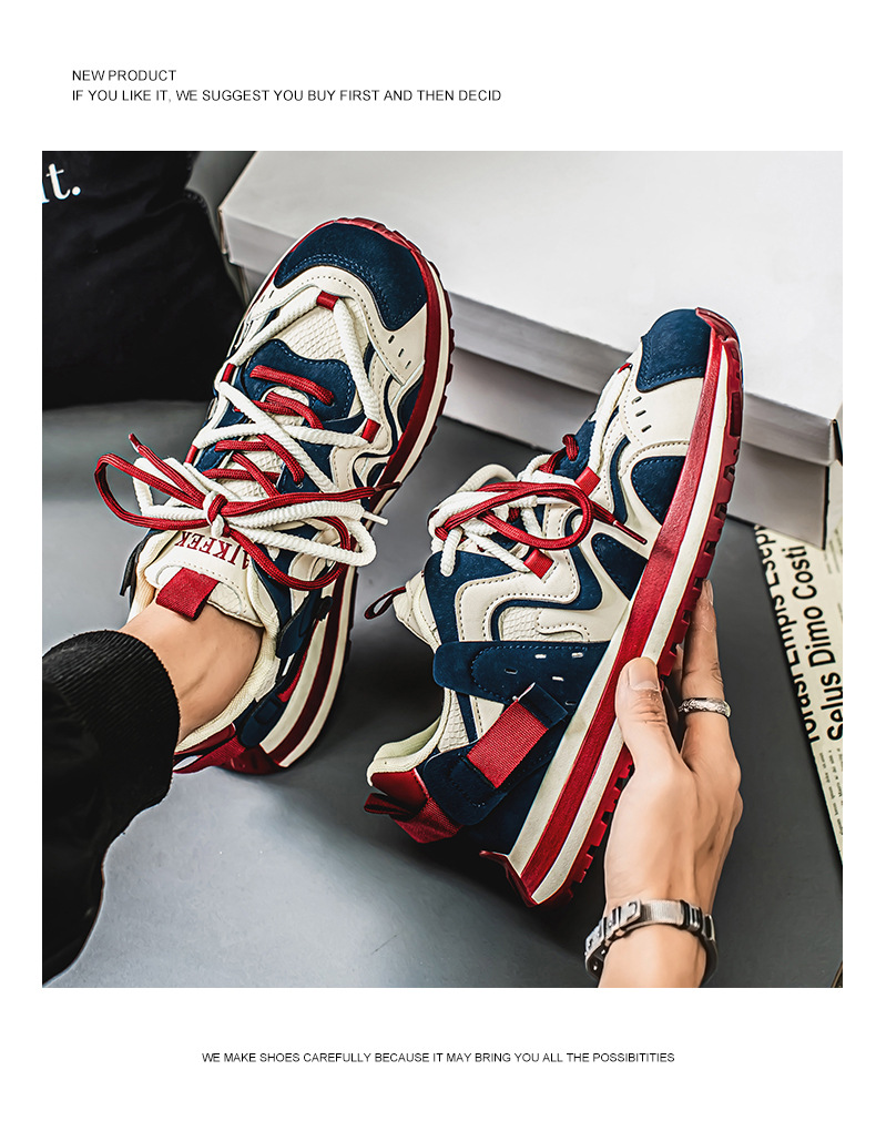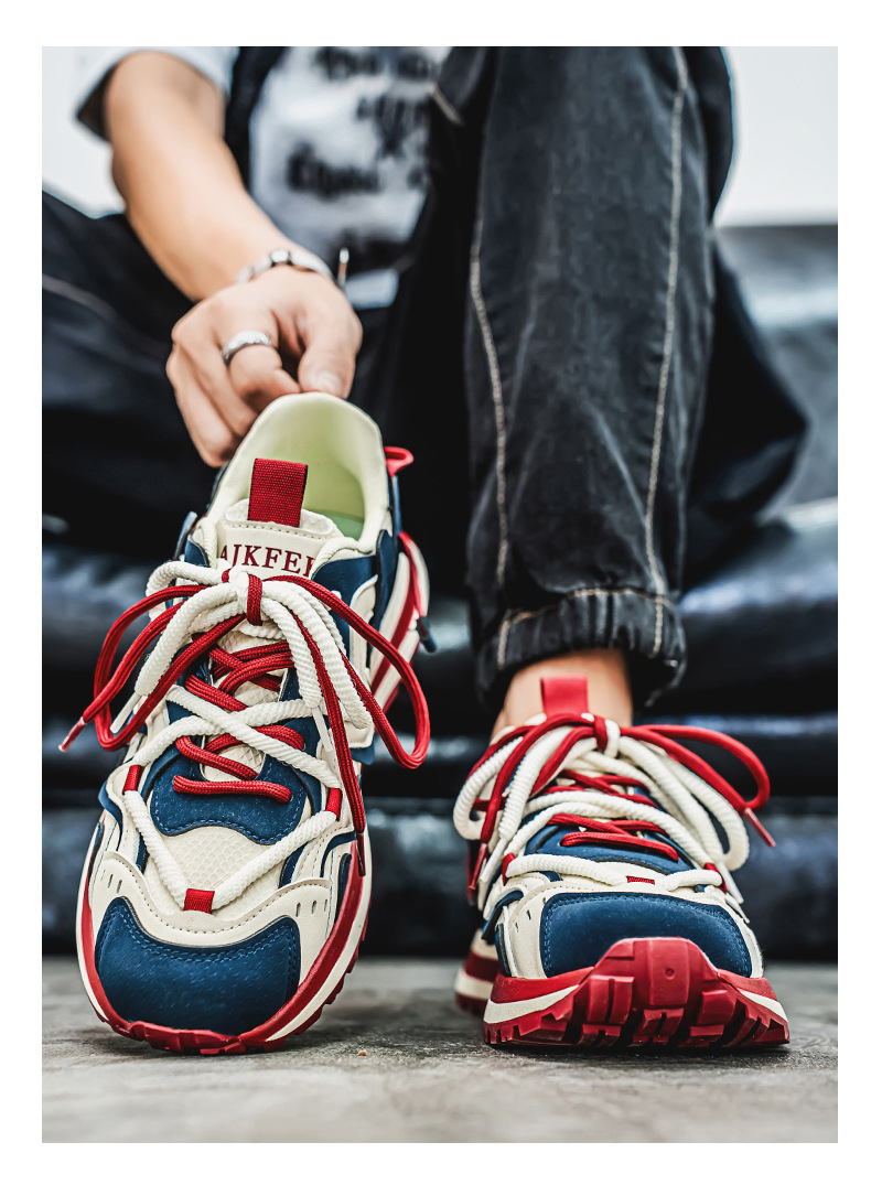 ヨーロッパステーションカラーブロックダッドシューズ2024秋スプライシング厚底滑り止めスポーツカジュアル紳士靴カジュアルで多用途
