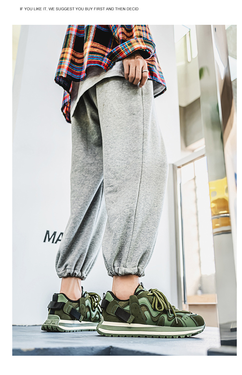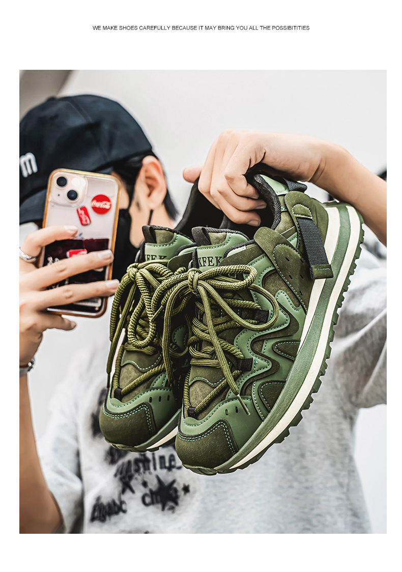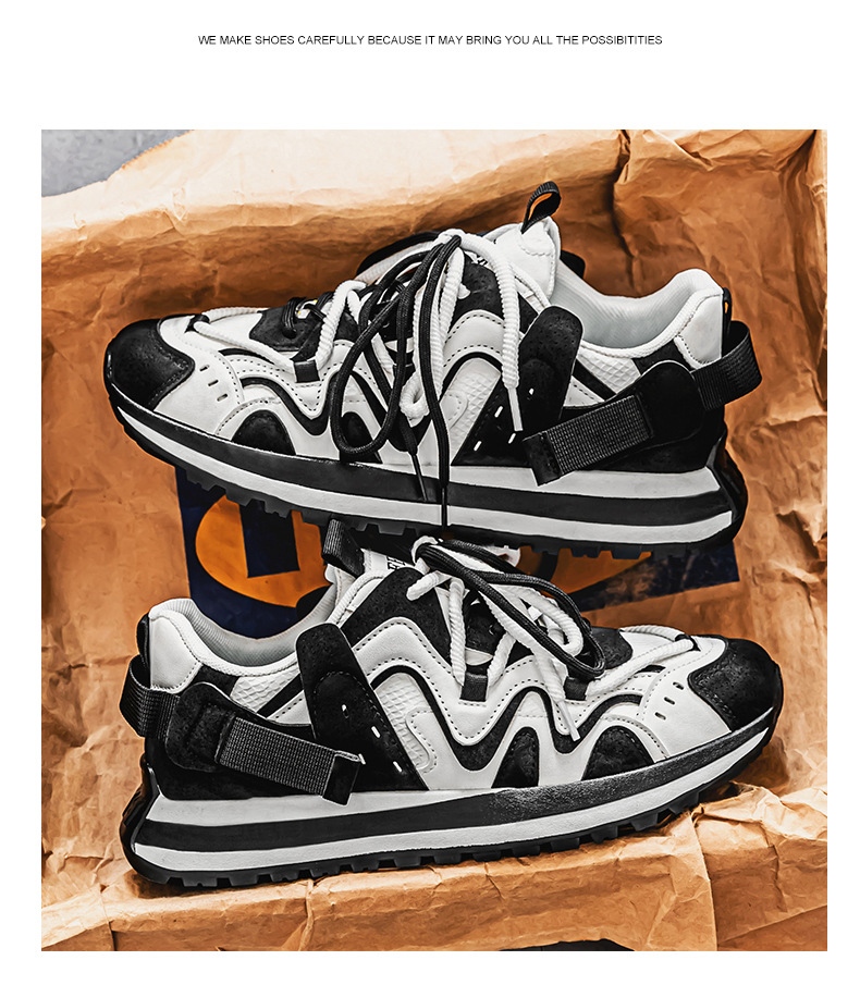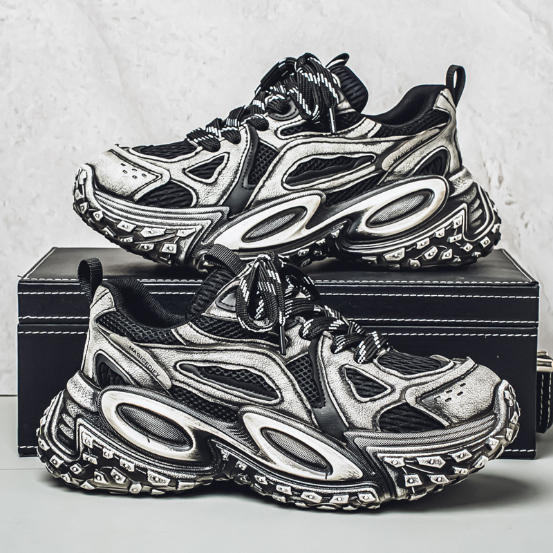 2025春の新型ins男靴のレトロな大きいサイズ46のお父さんの靴のネットのレジャーの厚い底は高くなってタイヤの靴を上げます。