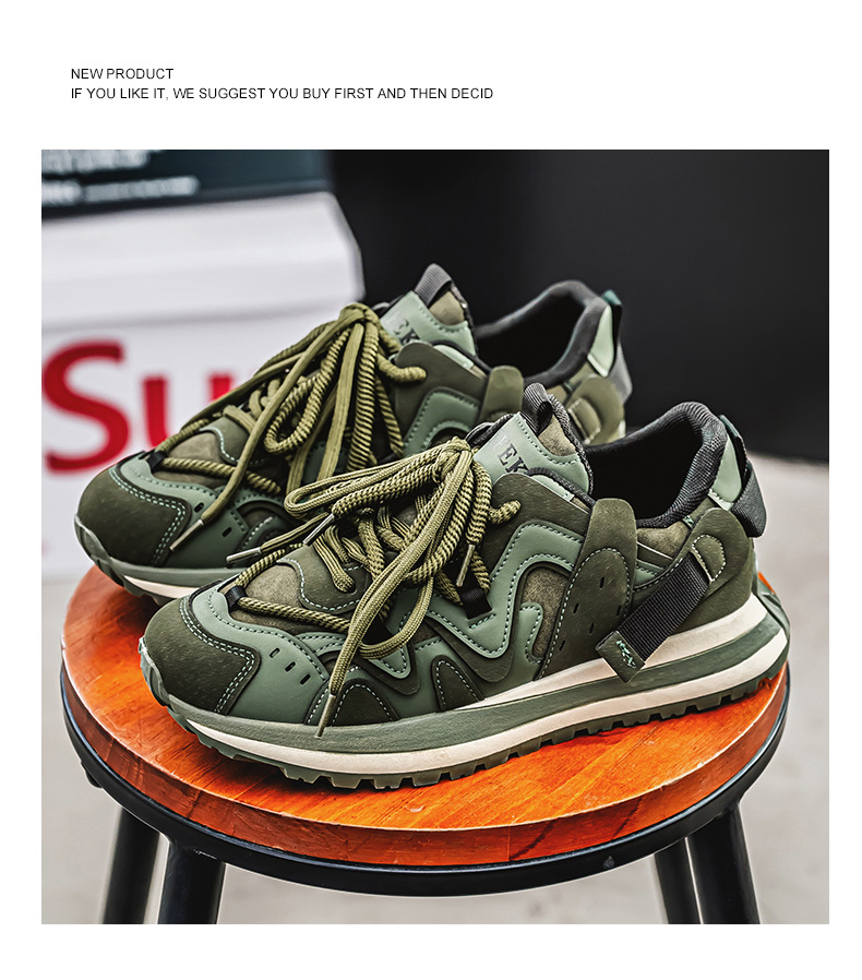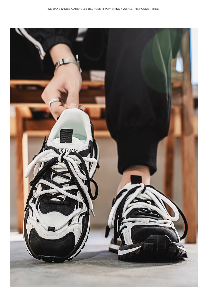 男性靴2025新型春の流行は厚い底の快適な耐摩耗運動カジュアルシューズ男性の爆発的なお父さん靴を組み合わせている