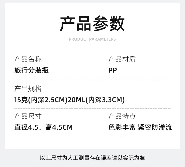 プラスチックボトル20g新品面クリームケース滑らかなボトル面25グラム分注ボトル20g二重カバー包装空ボトル