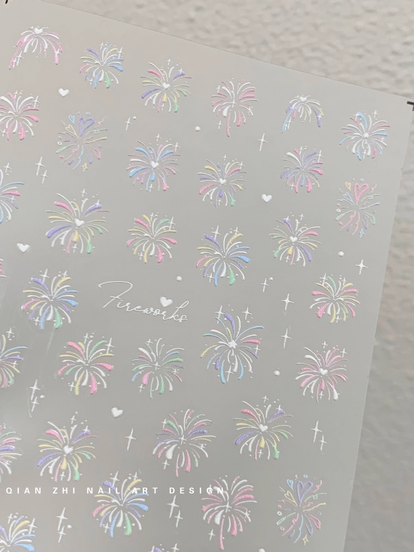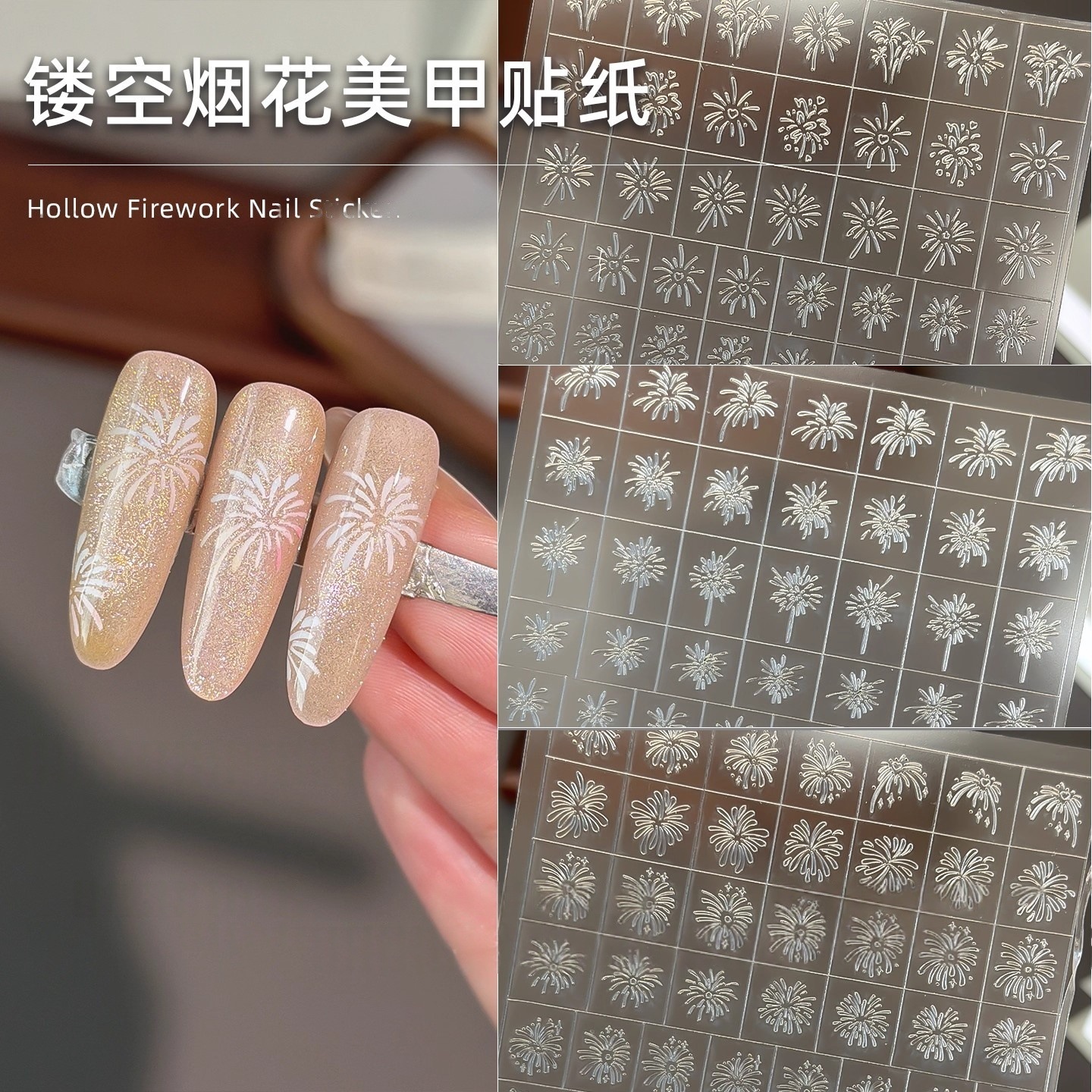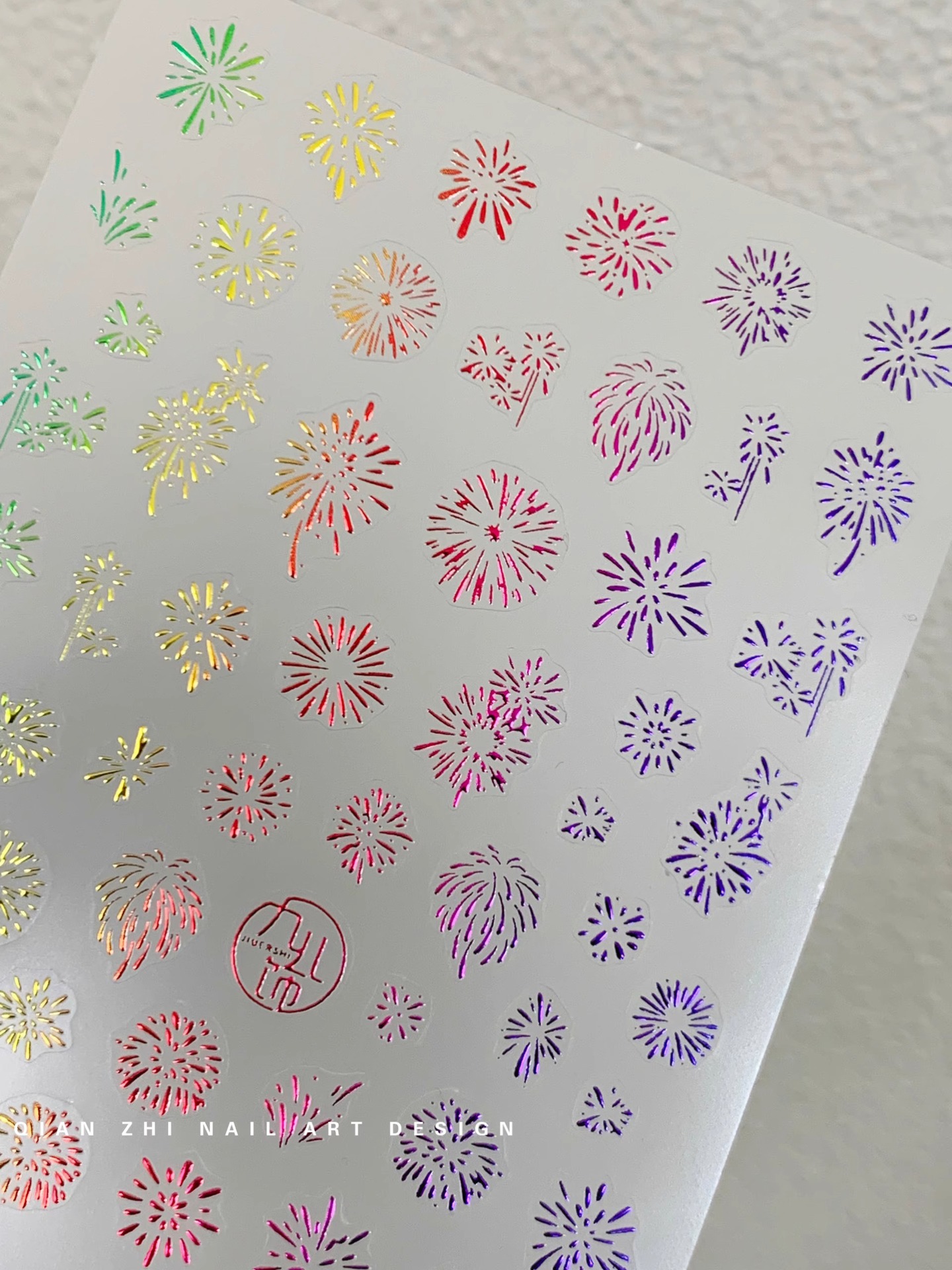 新年烟花鎏金美甲贴纸新中式指甲贴网红爆款梦幻珍珠烟花饰品素材