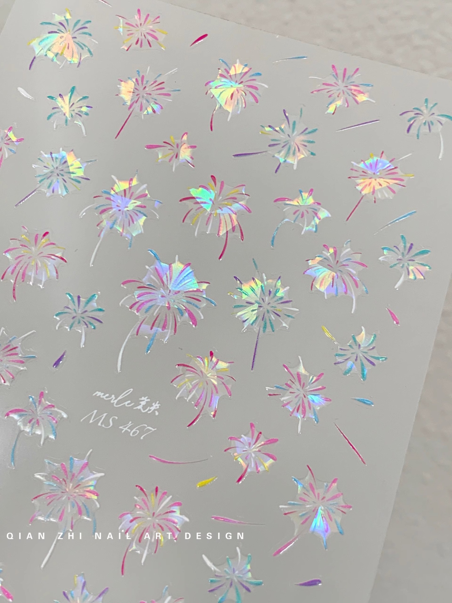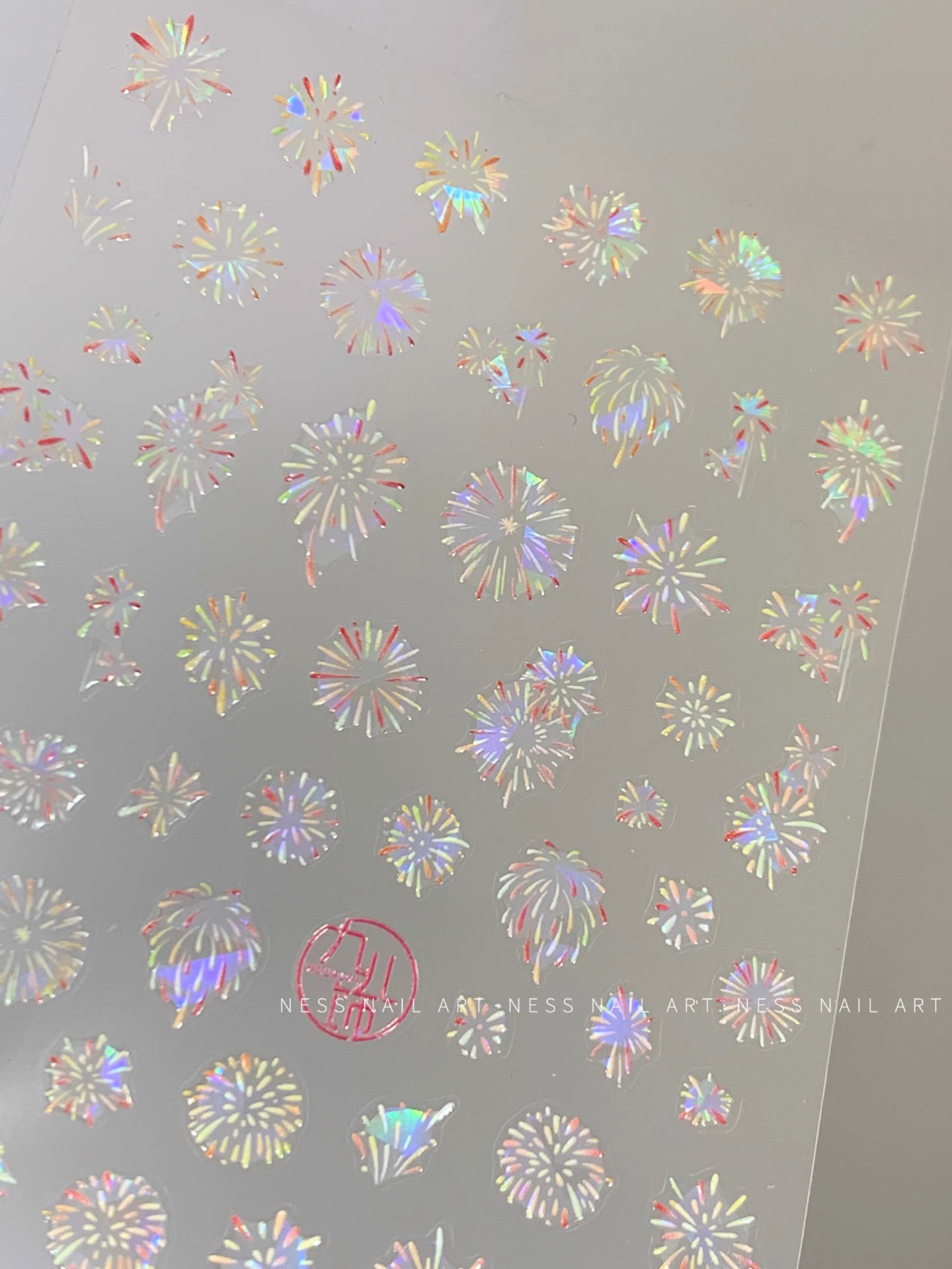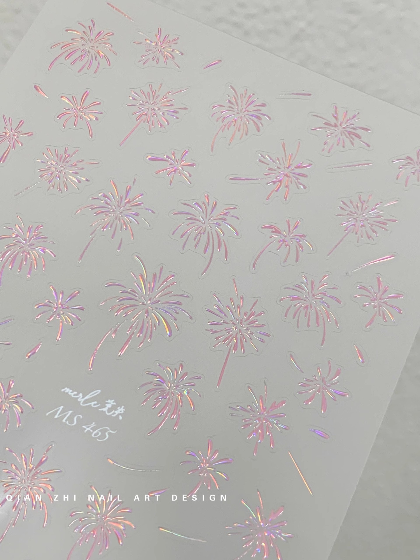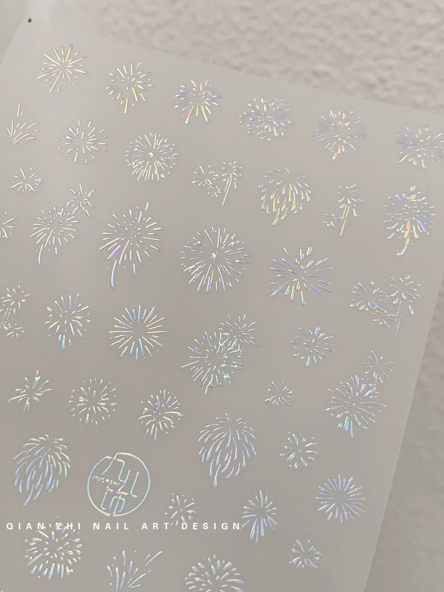 新年烟花鎏金美甲贴纸新中式指甲贴网红爆款梦幻珍珠烟花饰品素材