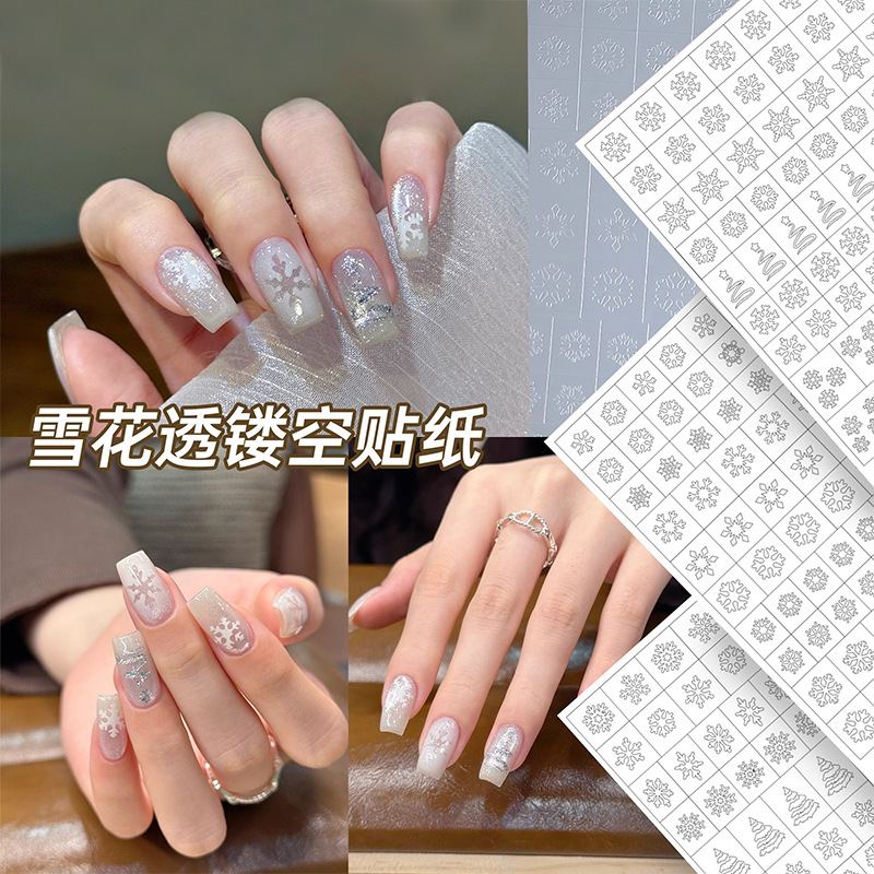 透明雪花圣诞镂空法式贴纸美甲贴烟花克罗心喷绘模板拍拍胶辅助贴