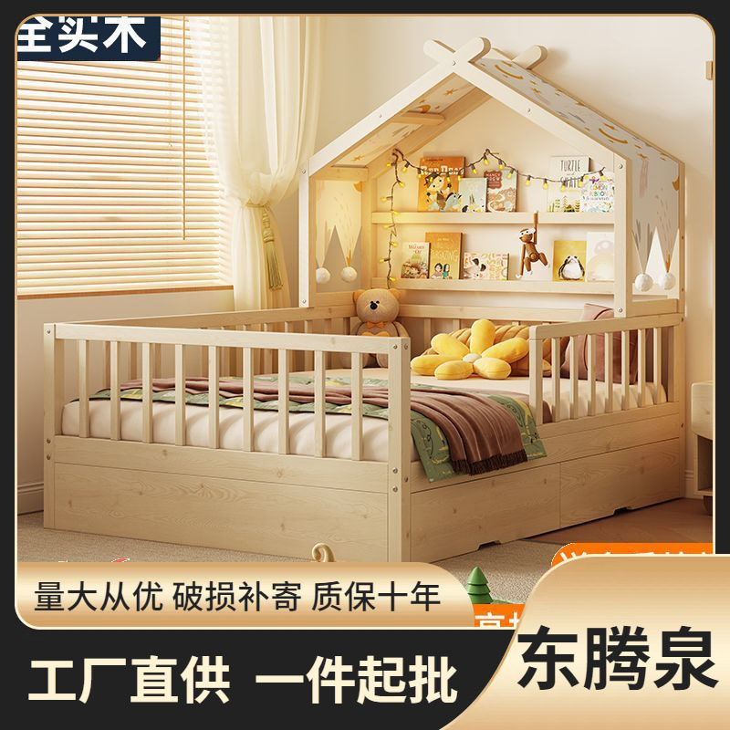 木造の子供用ベッド北欧ins風家庭用赤ちゃんの家樹屋の小戸型シンプルなシングルベッドの組み合わせベッド