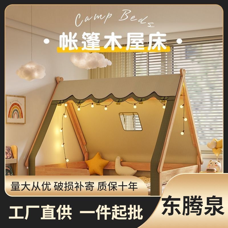 北欧風実木児童ベッド樹屋ベッドテント少年少女シングルベッド1.2メートル1.5児童部屋ガードレール付き