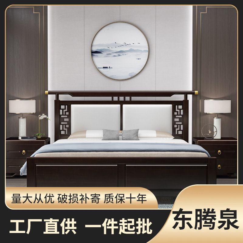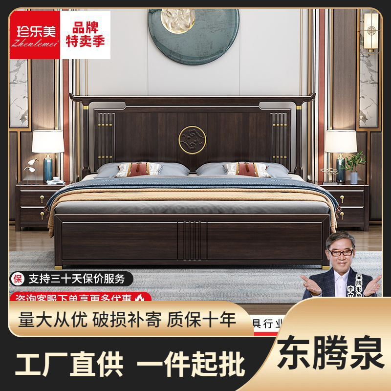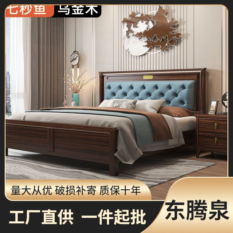 新中国式烏金木床1.8主臥大ベッド現代家庭用1.5シンプル収納ダブルベッド高級結婚ベッド