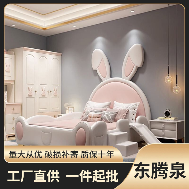 お姫様ベッド女の子ガード付き滑り台付き子供用ベッドウサギベッド実木シングルベッドアニメかわいい収納付き
