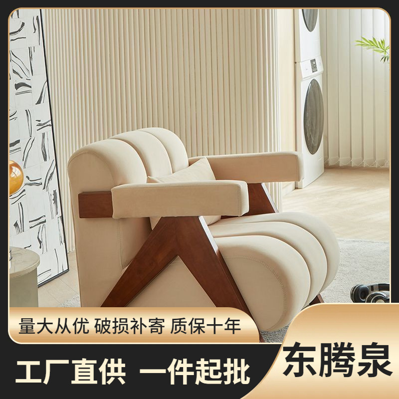 寂風実木ソファ客間クリーム風ソファデザイナーモデル羊小毛ソファ客間小ソファ北欧