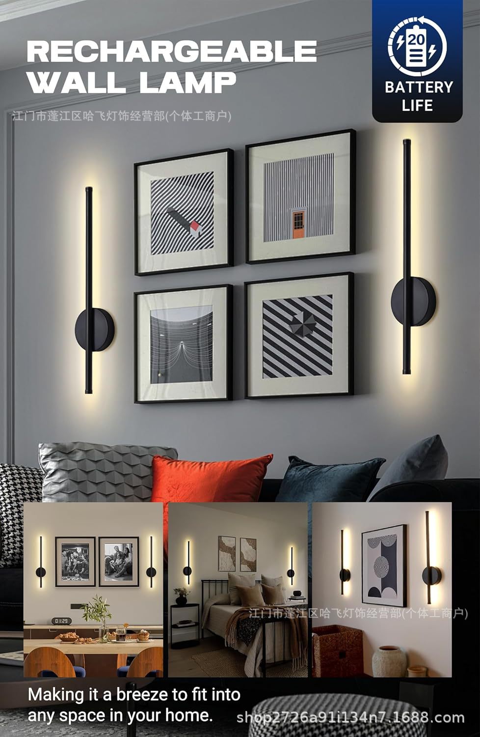 ロングウォールランプ LED リモコン配線不要磁気ラインウォールランプ充電式リニアウォールランプリビングルームベッドルームベッドサイド