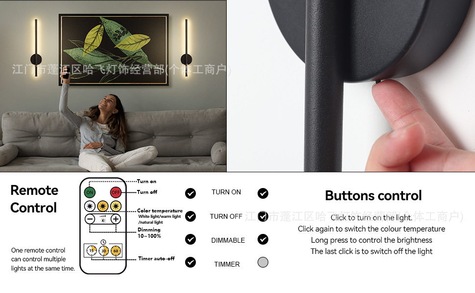 国境を越えた充電不要のLED壁掛け照明、超長寿命、回転式リモコン、三色調光壁掛け照明、工場直送