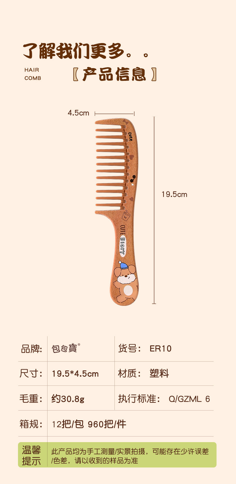 包包宝クロスボーダー人気ワイド歯付きプラスチック櫛家庭用静電気防止ふんわり長髪子供用髪櫛