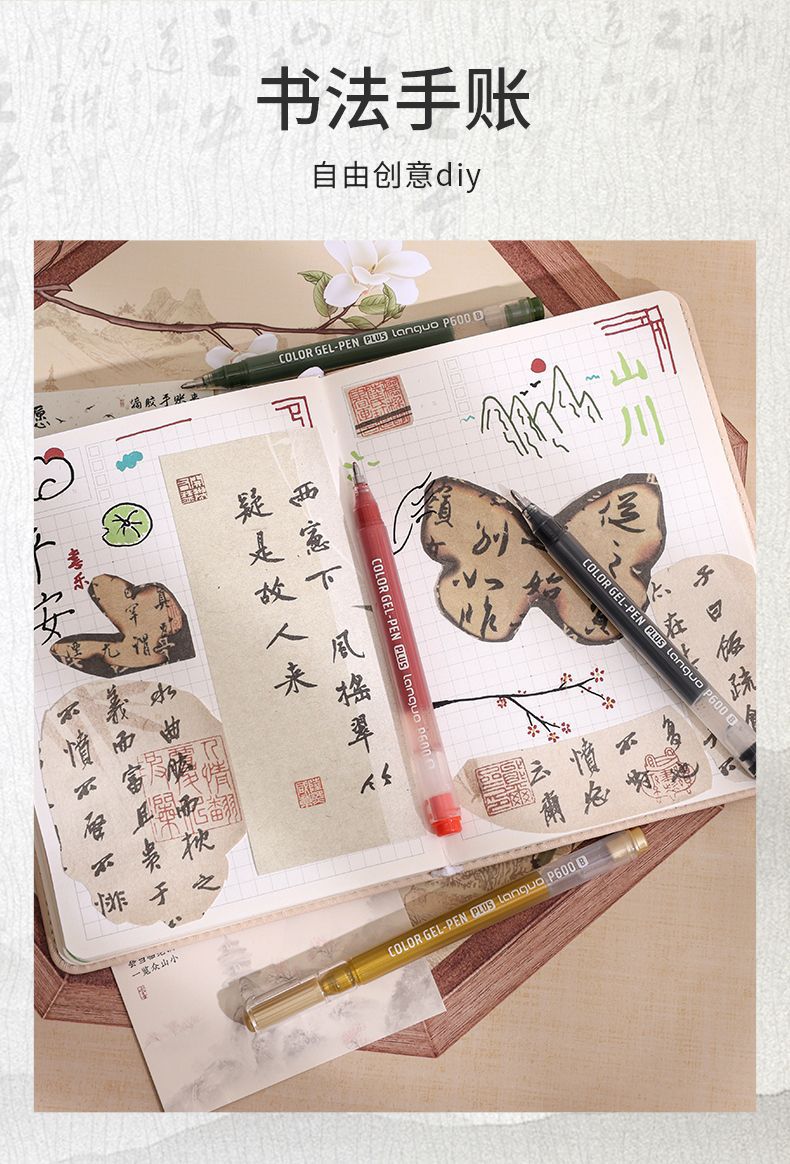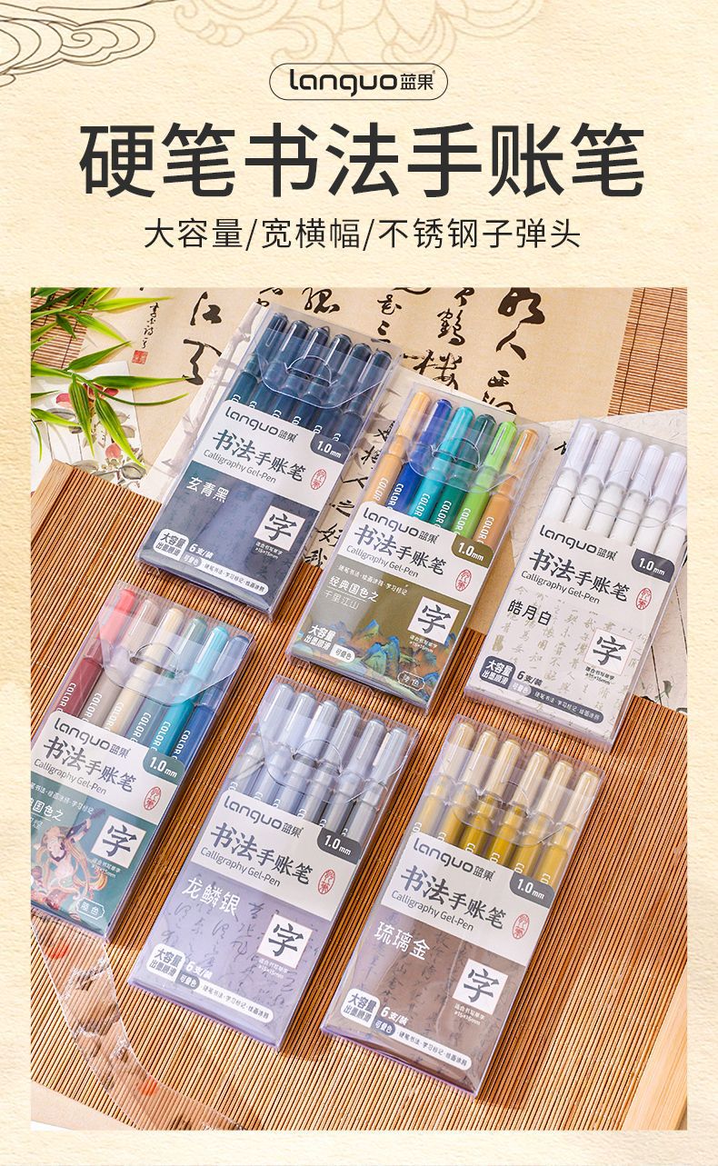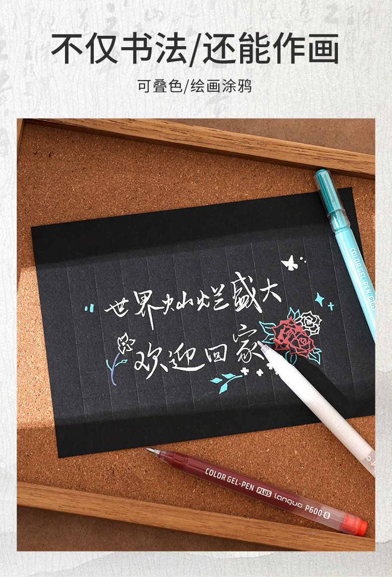 青果書道手帳筆金銀白黒硬筆書道練習字サイン写経中性筆1.0大容量