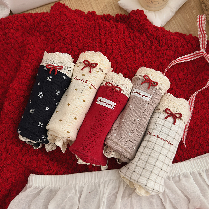 辰之伴纯棉内裤女中腰甜美提花红色结婚本命年透气蕾丝三角内裤女