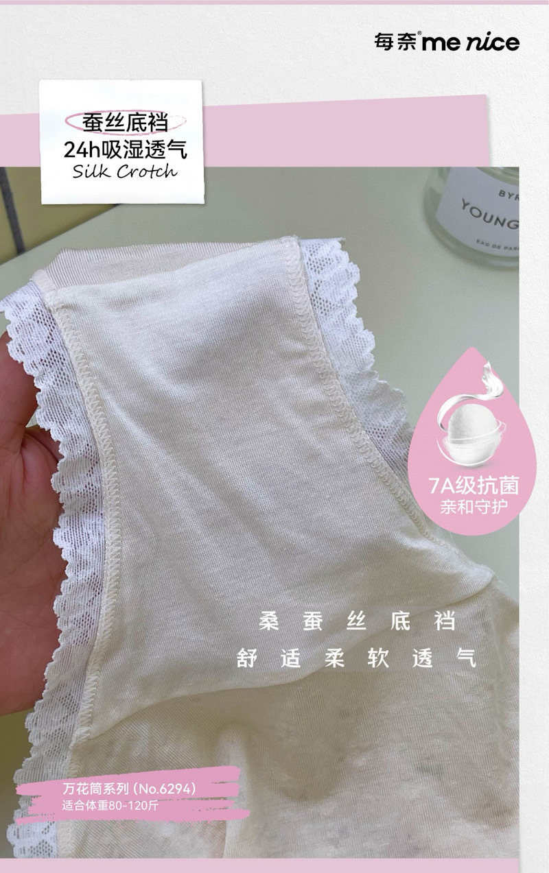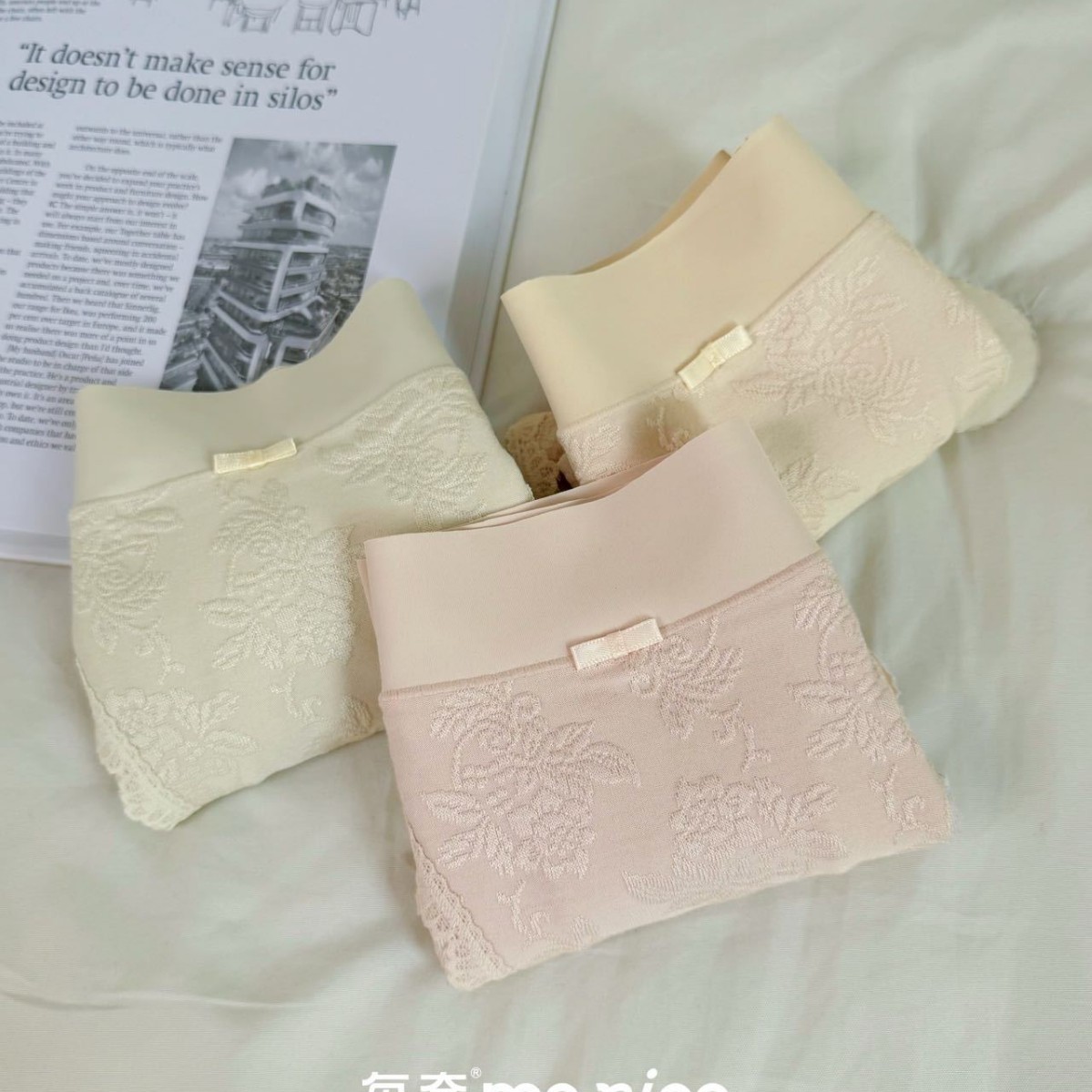 每奈高腰收腹内裤女无痕宫廷风蕾丝提臀透气包臀桑蚕丝底裆三角裤