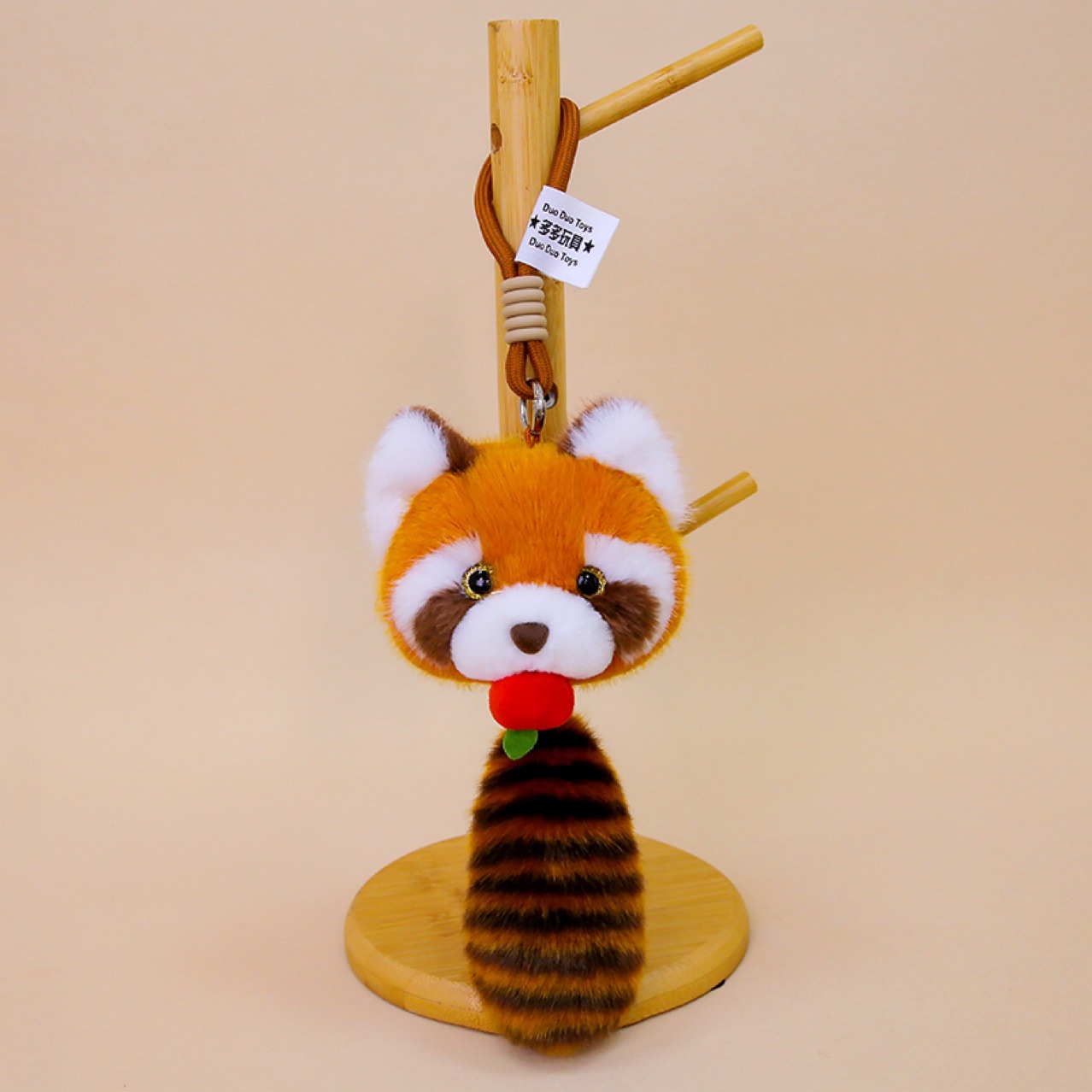 批发爆款小熊猫吃苹果拉线挂件小浣熊钥匙扣挂饰动物园女生礼物