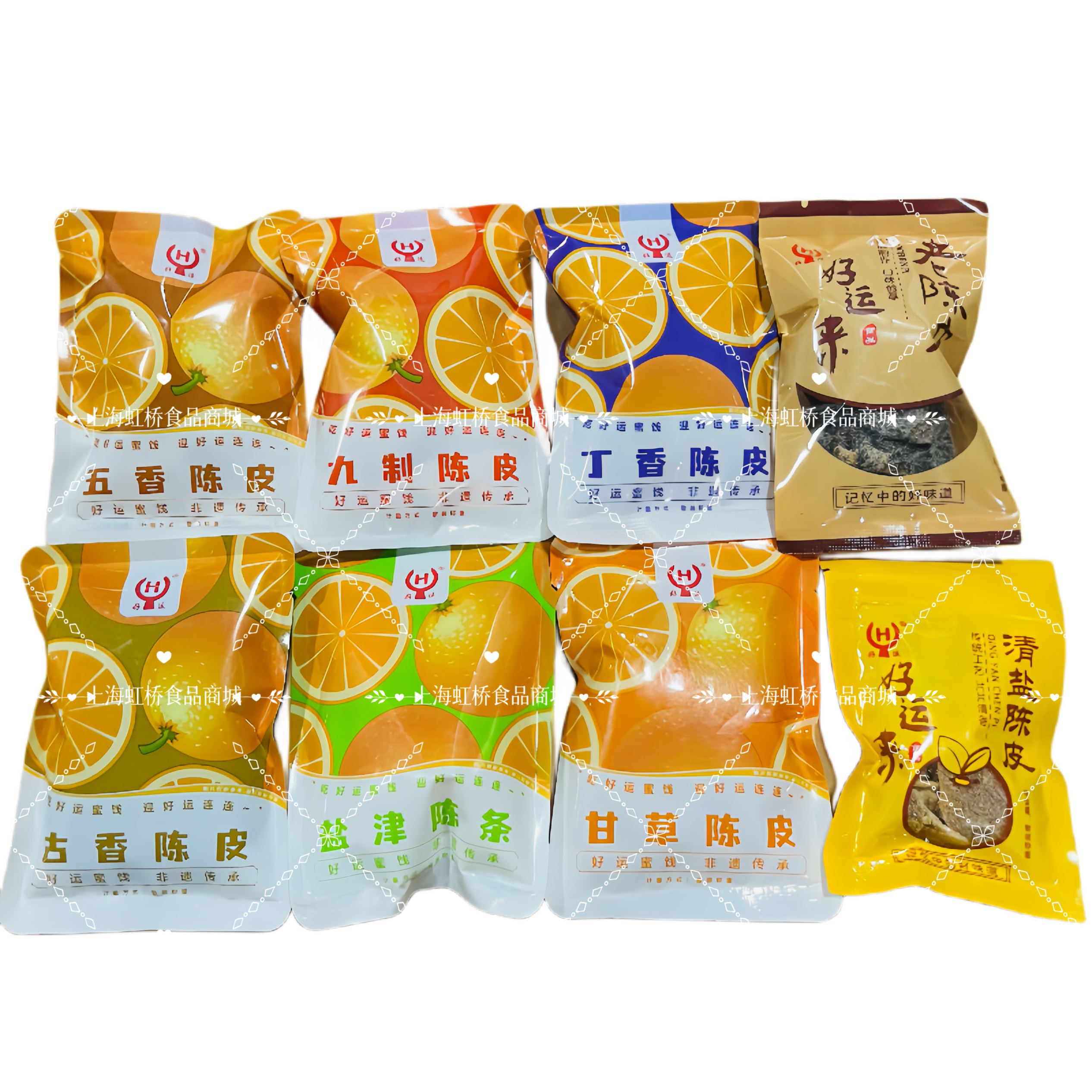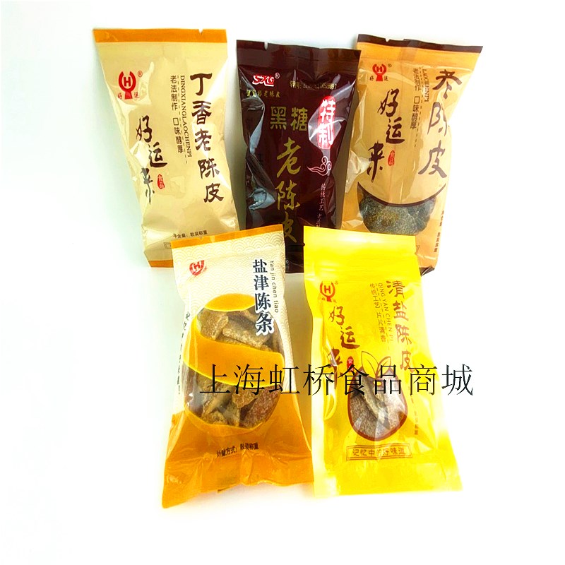 清盐陈皮 半斤约8包 ,1斤约15到16包。老陈皮半斤约5到6包,1斤约10到12包。丁香陈皮半斤约6包 1斤约11到12包。甘草陈皮半斤4到5包,1斤约10包,黑糖陈皮半斤约6包,1斤约12包,以实际秤重量为标准,按包数推断重量是不准确的。厂家授权保证,上海发货。