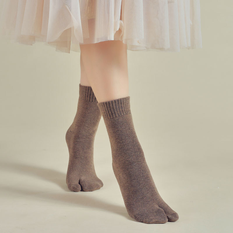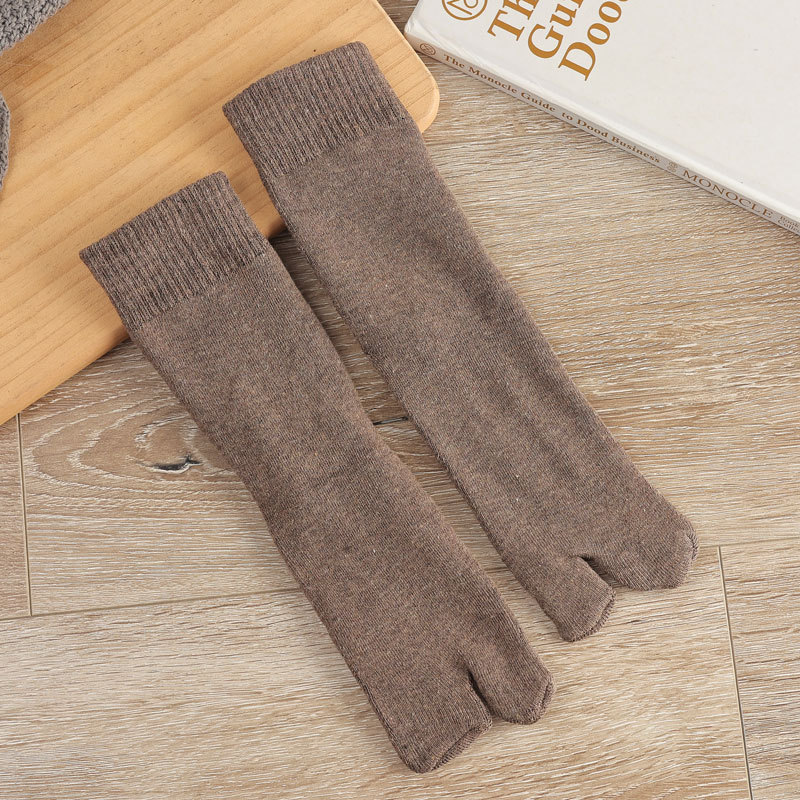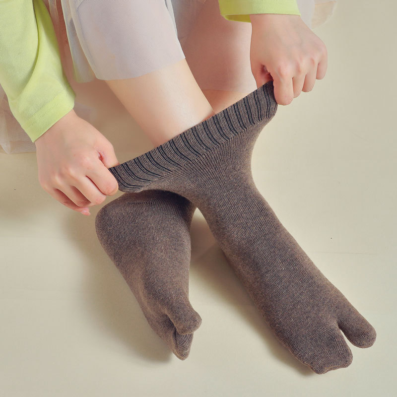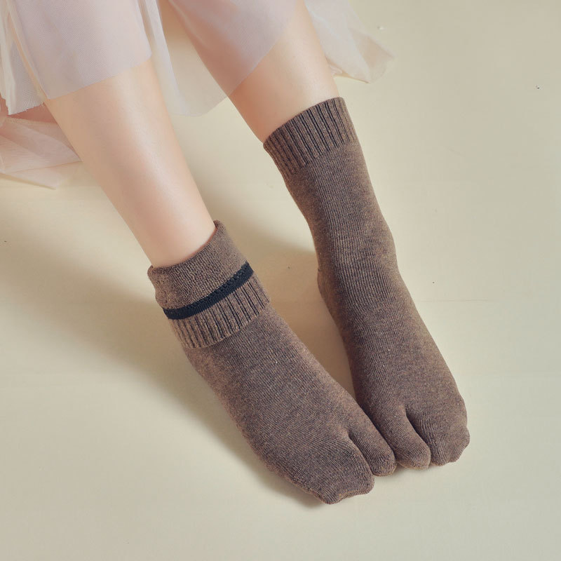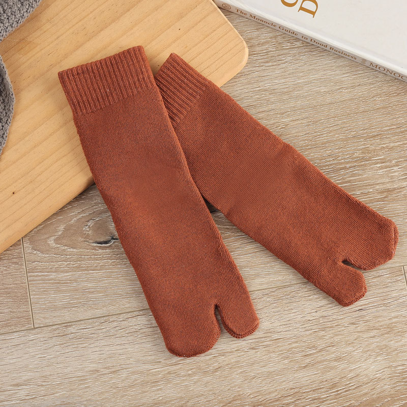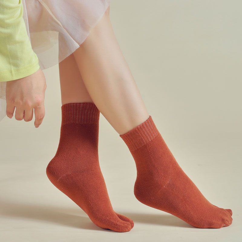 95%棉二趾袜子女春秋大地色分趾纯色中筒无骨抗起球纯棉木屐猪蹄
