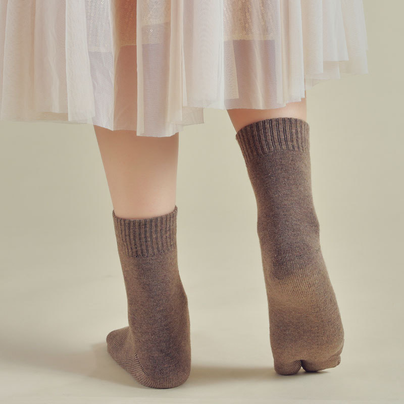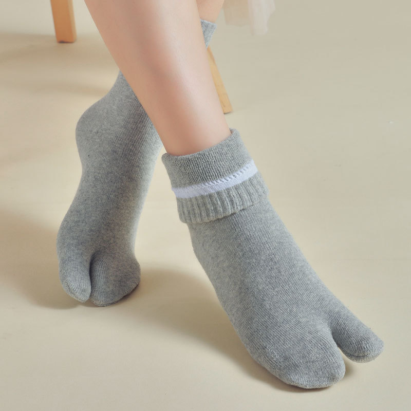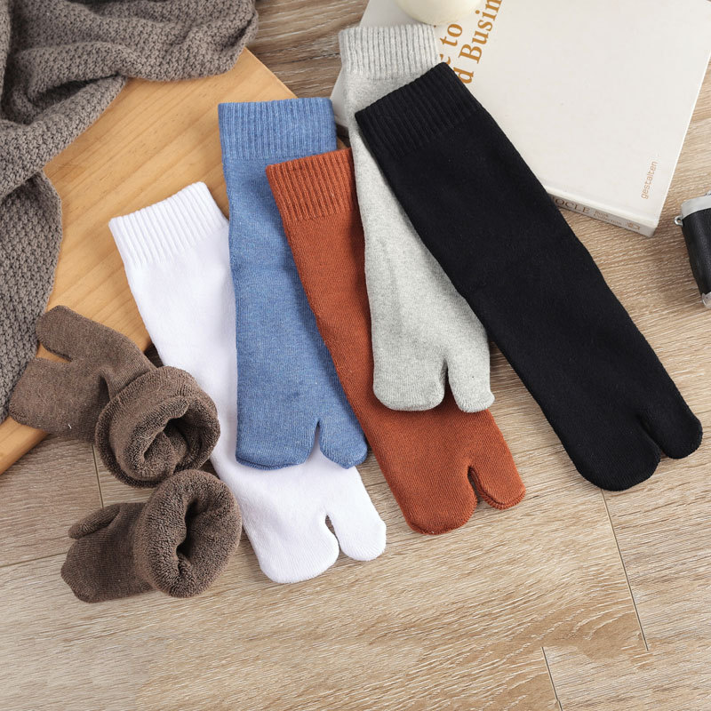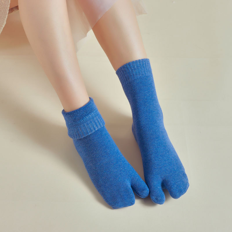分趾袜女生秋冬加厚棉毛圈厚款二趾猪蹄木屐袜中筒纯色保暖无骨袜