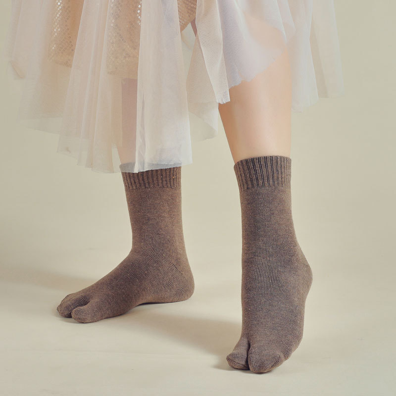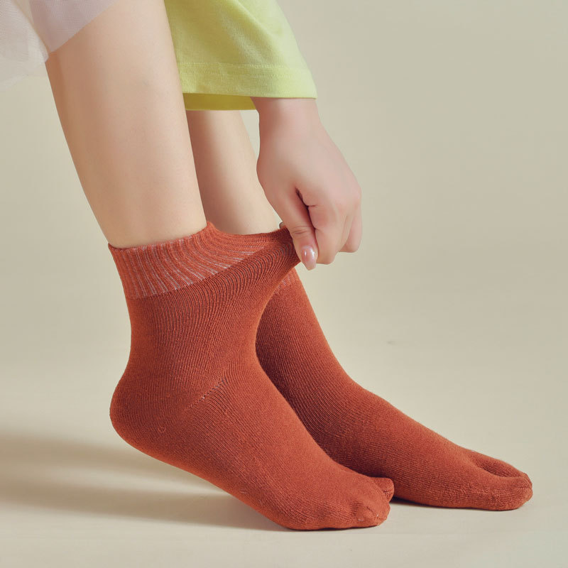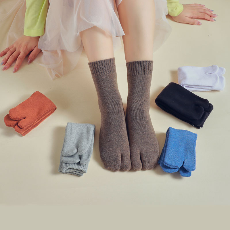 女性用二本指ソックス、ミッドカーフソックス、二本指綿ソックス、春秋スタイル、吸汗性、通気性、抗菌性、足を痛めない二本指ソックス、分割つま先ソックス