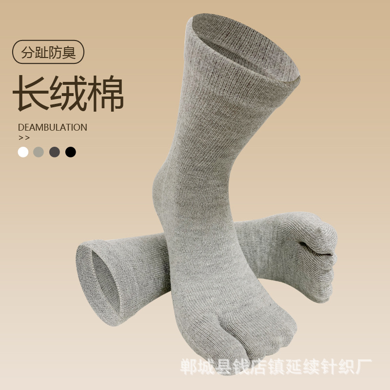靴下の女性春秋日本系純色綿質の指の靴下の薄いタイプの人の字は防臭します。